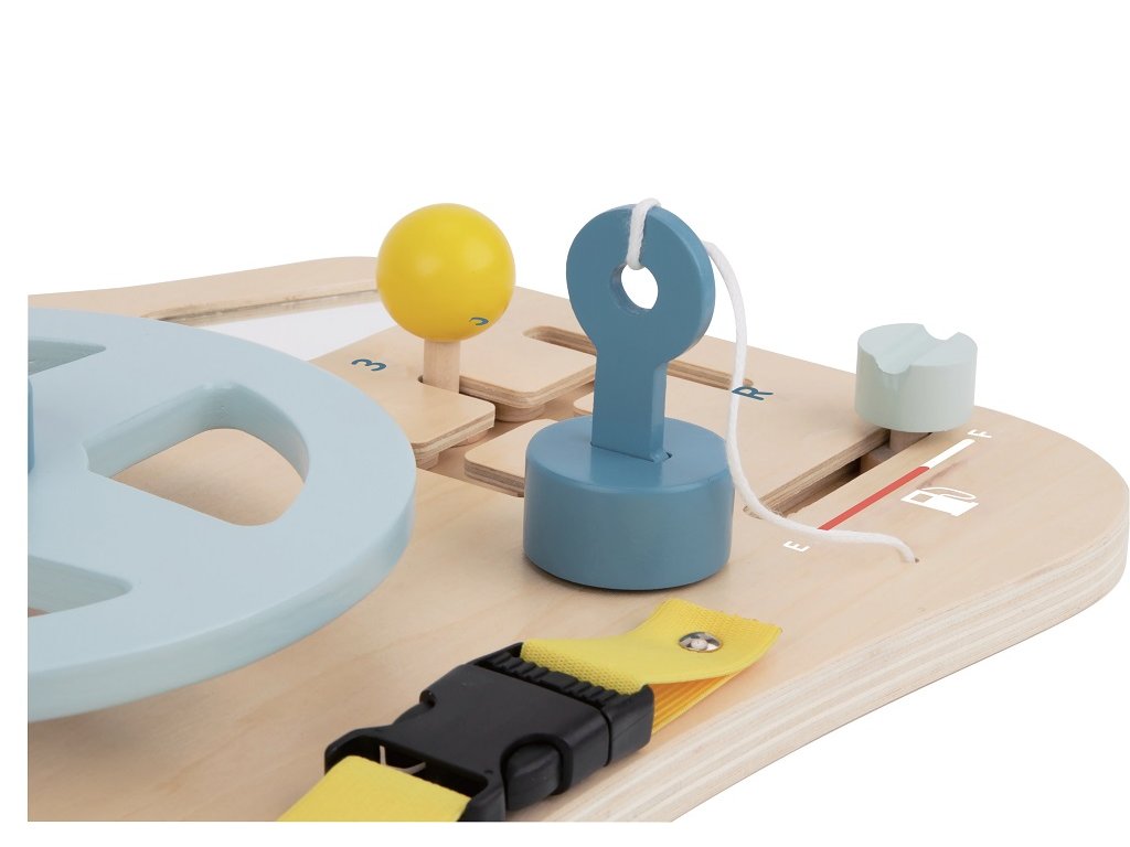 Mami, tati, dneska řídím já! Tato hrací deska přináší spoustu zábavy, díky které bude moci Vaše dítě rozvíjet svou zručnost, zvídavost a zejména jemnou motoriku. Zámky, pásky a tlačítka dávají dítěti možnost procvičovat různé posouvání, otáčení či otevírání a připravit se tak na každodenní úkony. Mimo aktivit zapojující smyslové dovednosti deska disponuje volantem - skvělá možnost jak posunout představivou hru ještě dál. Jízda to bude daleká! Hlavní vlastnosti: podporuje nezávislost, jemnou motoriku a koordinaci ruka-okopodněcuje kreativní myšlení a vývoj představivostisenzorická stimulaceedukace skrze hru Značka a certifikát FSC® (Forest Stewardship Council) zaručuje, že dřevo, ze kterého byl produkt vyroben, nebylo vytěženo nelegálně a pochází z lesů obhospodařovaných šetrným či přírodě blízkým způsobem, ve kterém jsou dodržovány přísné environmentální a sociální požadavky. Značka FSC® na výrobku znamená, že svým nákupem pomáháte chránit lesy a podporujete šetrné, odpovědné či přírodě blízké hospodaření, díky kterému jsou naše lesy stabilnější, zdravější, mají přirozenou druhovou skladbu a lépe odolávají negativním následkům klimatických změn.