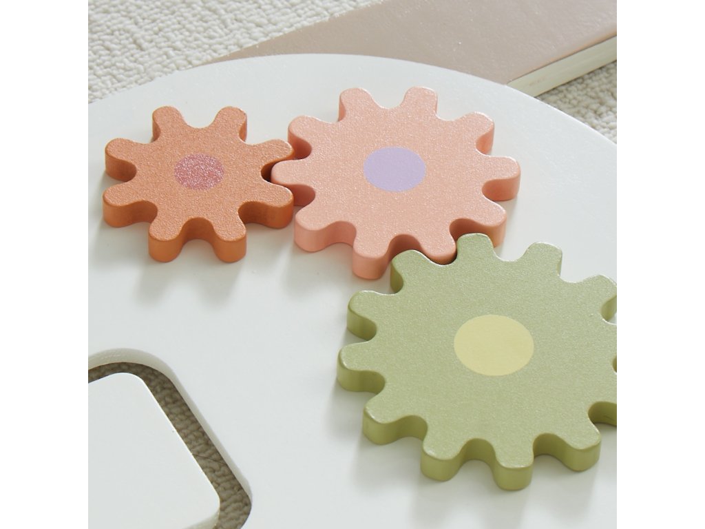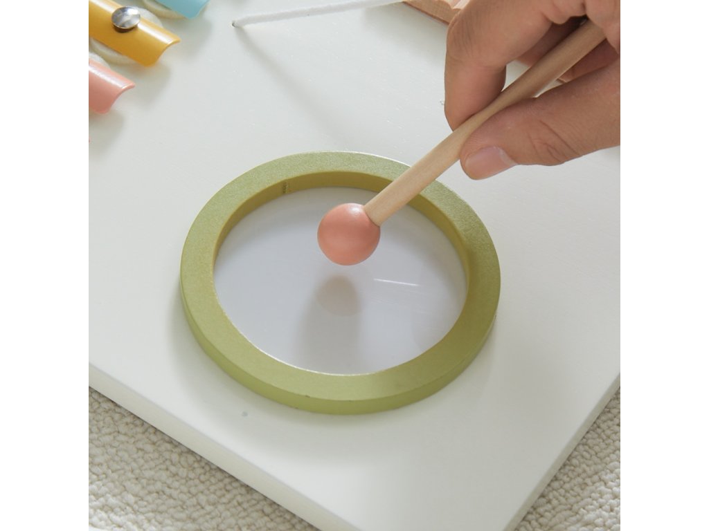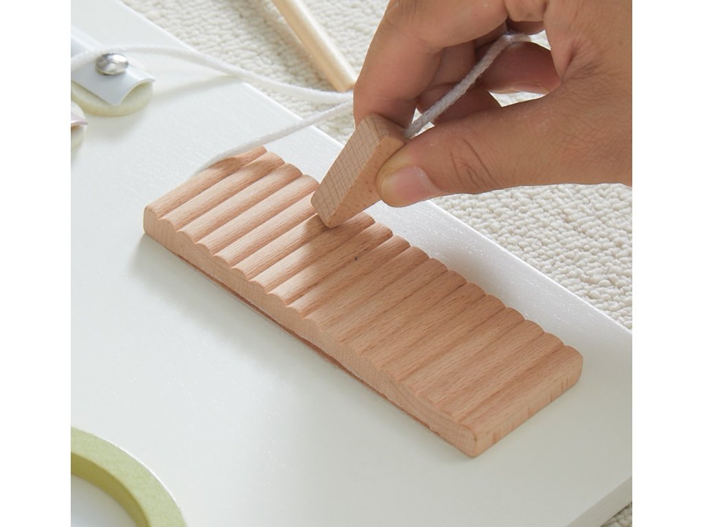 Tato velká dřevěná motorická deska ve tvaru pejska v jemných pastelových barvách přináší dětem nekonečné možnosti objevování a hraní. Její originální tvar a hravý design zaujme na první pohled, a ještě víc potěší pestrou nabídkou aktivit, které dětem nabízí. Po celé délce „tělíčka“ pejska děti najdou více než deset různorodých herních prvků – otočná a ozubená kolečka, xylofon, barevné otevírací geometrické tvary, bludiště, počítadlo, zrcátko, hmatové a motorické dráhy, třídění barevných kuliček podle počtu pomocí magnetického pera a další hravé detaily.Každý herní prvek je navržen tak, aby podporoval dětskou zvídavost, procvičoval jemnou motoriku, koordinaci pohybů i smyslové vnímání – a to vše přirozeně, hravou formou. Díky svým rozměrům je deska ideální i pro společné hraní více dětí. Zároveň se stane stylovou a originální dekorací každého dětského pokoje nebo herny. Hlavní vlastnosti: velká dřevěná motorická deska ve tvaru pejskajemné pastelové barvy v kombinaci s přírodním dřevemvíce než 10 různých herních aktivitrozvíjí jemnou motoriku, koordinaci a smyslové vnímáníkvalitní a bezpečné zpracováníideální od 3 letedukativní hračka i stylová dekorace