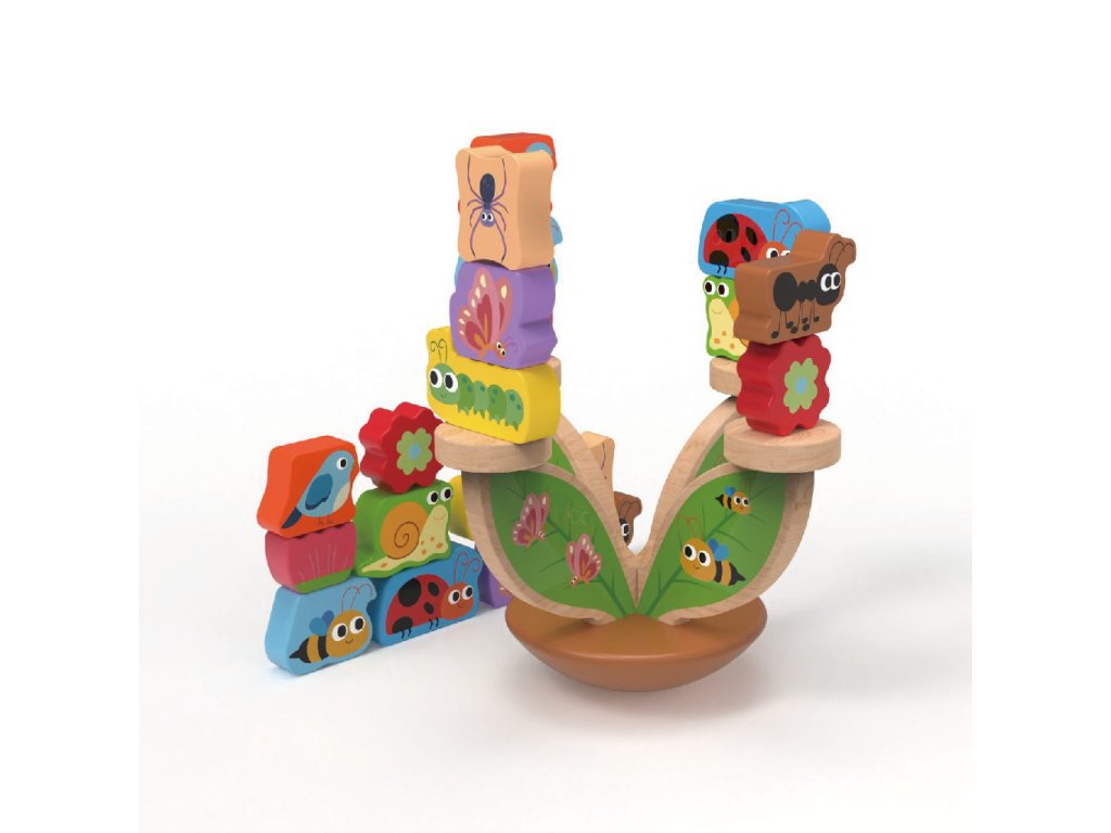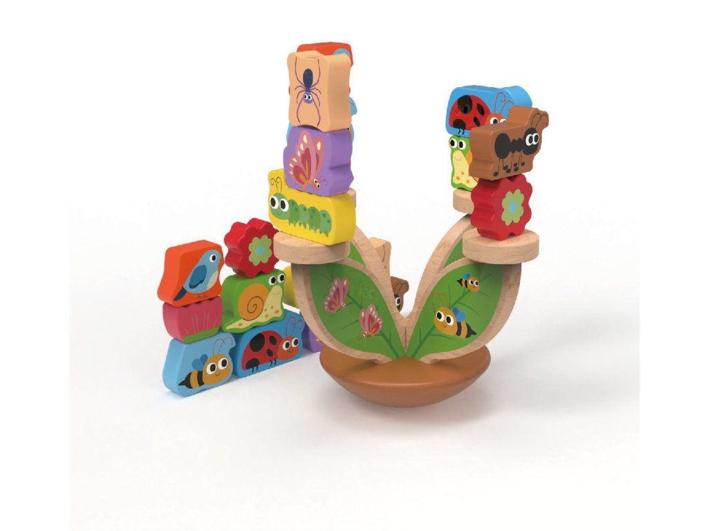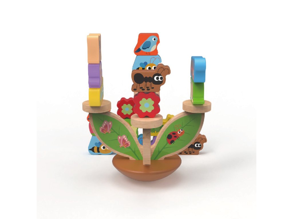 S touto 21dílnou balanční hrou si děti užijí mnoho zábavy. Hra obsahuje balanční kámen se čtyřmi listy a pestrobarevné dřevěné tvary v různých velikostech s ilustrací zvířátek a květin, které můžete zahlédnout na každé louce. Představte si, že Vy jste malé zvířátko s velkým úkolem, jak správně vyvážit louku. Co nejšikovněji rozmístěte na strany tvary tak, aby se všechny vešly na louku, ale pozor na správné vybalancování listů, ať Vám to nespadne! Tuto hru můžete hrát také s rodinou či kamarády. Střídejte se po jednom ve stohování tvarů na listy. Vyhrává ten, kdo umístí poslední zvířátko či květinu tak, aby nespadly všechny ostatní. Pokud nebude louka správně vybalancovaná a tvary z něj spadnou, můžete začínat znovu a znovu. Pevné nervy! Hlavní vlastnosti: pestrobarevné tvaryvyrobeno ze dřevarozvíjí motoriku a logické myšlenítrénuje trpělivost