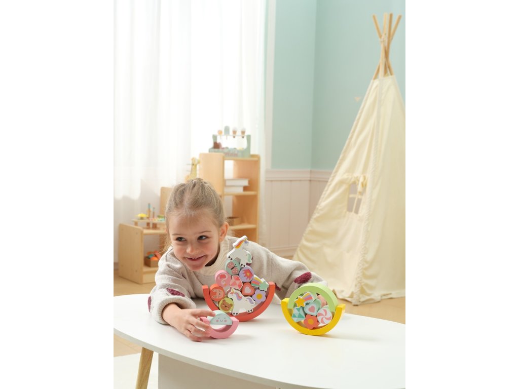 21dílná balanční hra v designu Unicorn. Všestranná dřevěná hračka s nekonečnými možnostmi hraní. S těmito hracími bloky můžete balancovat nebo je stohovat. Malé ručičky sestavují různé tvary a předměty, zatímco se učí o velikostech a barvách. Hra obsahuje 4 barvy duhy, 2 postavičky jednorožce a 15 pestrobarevných dřevěných tvarů v různých velikostech s ilustrací ze světa Unicorn. Vyrobeno ze dřeva s certifikací FSC. Hlavní vlastnosti: rozvíjí jemnou motoriku dětíbloky s hezkou ilustracímultifunkční využitíveselé, pestré barvy21 dílůvyrobeno z FSC® dřeva Značka a certifikát FSC® (Forest Stewardship Council) zaručuje, že dřevo, ze kterého byl produkt vyroben, nebylo vytěženo nelegálně a pochází z lesů obhospodařovaných šetrným či přírodě blízkým způsobem, ve kterém jsou dodržovány přísné environmentální a sociální požadavky. Značka FSC® na výrobku znamená, že svým nákupem pomáháte chránit lesy a podporujete šetrné, odpovědné či přírodě blízké hospodaření, díky kterému jsou naše lesy stabilnější, zdravější, mají přirozenou druhovou skladbu a lépe odolávají negativním následkům klimatických změn.