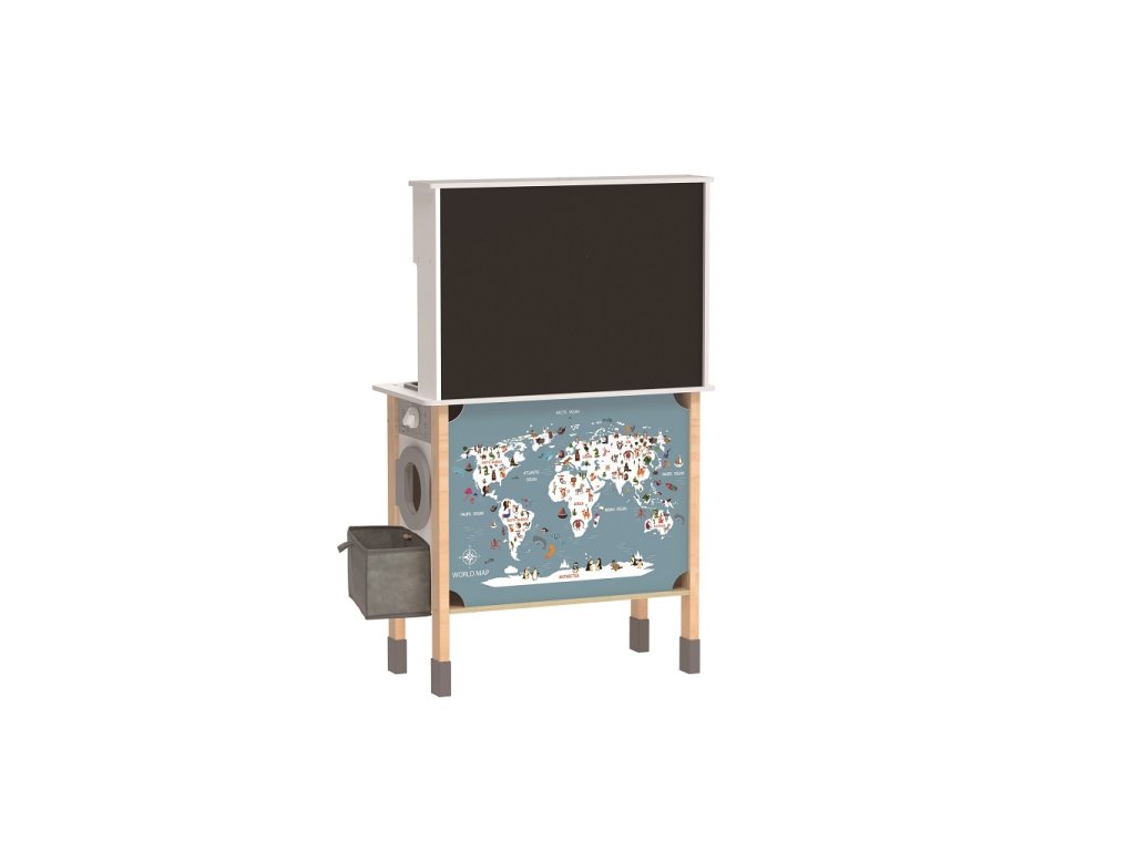 Je libo čerstvý koláček přímo z pece? Nebo snad máte zálusk na něco smaženého? S touto kuchyňkou můžete mít menu, jaké se Vám zlíbí. Je totiž plně vybavená! Najdete zde vše, co v žádné moderní kuchyni nesmí chybět - sporák s troubou, myčku, mikrovlnku, dřez, kávovar a samozřejmě nádobí s náčiním, jako jsou talíře, hrnec, pánev, hrneček a další. Na boční straně kuchyňky je umístěna pračka, ze které je možné vyprané prádlo uložit do zavěšeného odnímatelného košíku. Ani zadní strana kuchyňky nezůstala nevyužitá. Na praktickou černou tabuli mohou děti napsat vzkaz, sepsat suroviny receptů nebo něco nakreslit. Jako inspirace jim třeba poslouží zábavné mapa se zvířátky, která je také zezadu. Tak si nasaďte kuchařskou čepici, oblečte praktickou zástěru a můžete začít vařit. Jelikož nám záleží na planetě Zemi, nesmíme také zapomenout na koše na třídění! Hlavní vlastnosti: součástí je bohaté příslušenstvímultifunkční, rozmanité využitírozvíjí komunikační a sociální dovednostivyrobeno ze dřeva s certifikací FSC® Značka a certifikát FSC® (Forest Stewardship Council) zaručuje, že dřevo, ze kterého byl produkt vyroben, nebylo vytěženo nelegálně a pochází z lesů obhospodařovaných šetrným či přírodě blízkým způsobem, ve kterém jsou dodržovány přísné environmentální a sociální požadavky. Značka FSC® na výrobku znamená, že svým nákupem pomáháte chránit lesy a podporujete šetrné, odpovědné či přírodě blízké hospodaření, díky kterému jsou naše lesy stabilnější, zdravější, mají přirozenou druhovou skladbu a lépe odolávají negativním následkům klimatických změn.