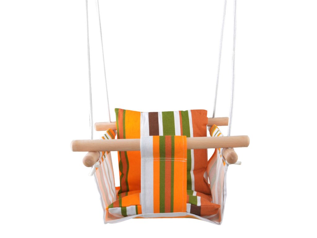 Dětská textilní houpačka z 100% bavlny a pevného dřeva, s 2 karabinami pro zavěšení a výškově nastavitelnými lany. Nezbytný pomocník pro nejmenší objevitele venkovní zábavy na dětském hřišti. Hlavní vlastnosti: nosnost 50 kgvýškově nastavitelné lano (max. 180 cm)konstrukce z pevného dřeva o rozměrech 40x2,8 cm