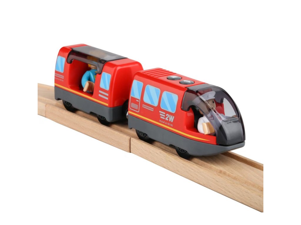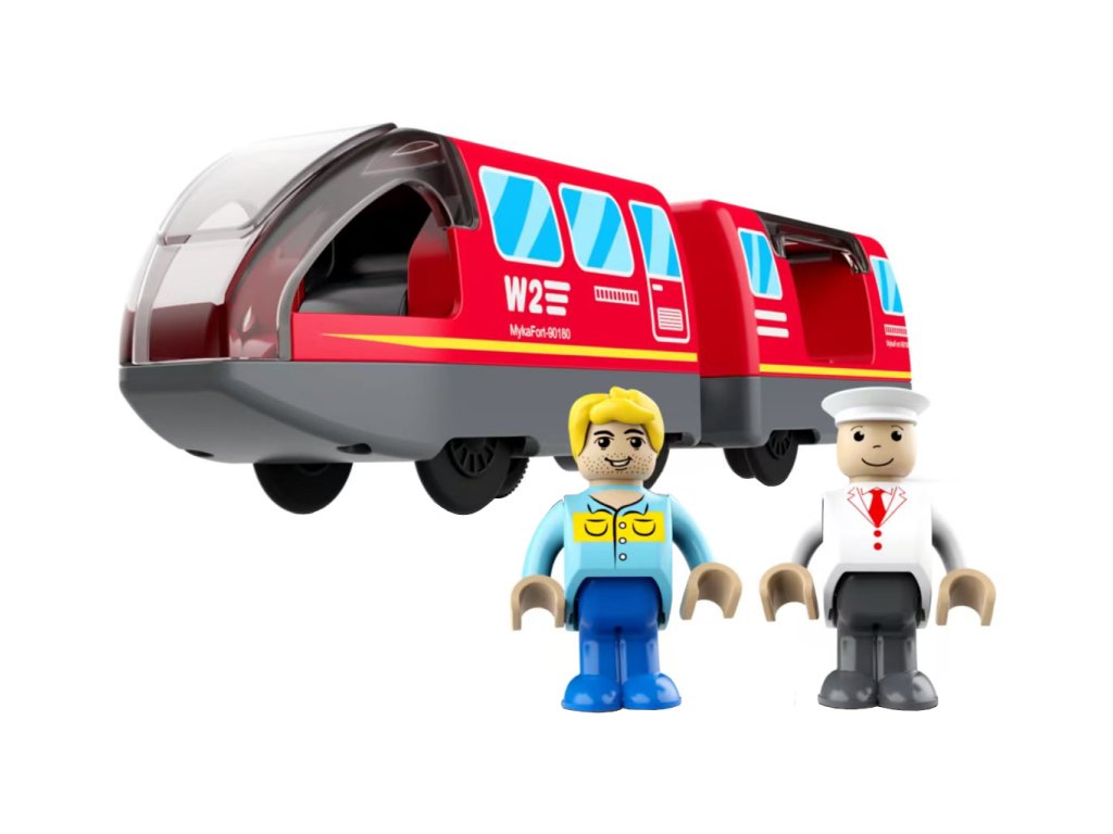 Originální elektrický vlak na baterie v moderním městském designu potěší každého malého nadšence dopravy! Červená souprava s realistickými detaily se snadno ovládá. Lokomotiva je poháněná bateriemi a sama jezdí, takže si děti mohou užít dynamickou a zábavnou hru. Lokomotiva s vagónkem je propojena magnetem, což umožňuje jednoduché sestavení i rozpojení. Součástí balení jsou dvě figurky, které obohatí dětské příběhy při hraní. Vlak lze kombinovat s běžnými dřevěnými vláčkodráhami a rozšiřovat tak herní svět podle vlastní fantazie. Ideální pro rozvoj jemné motoriky, koordinace a představivosti. Nabízí dětem skvělou zábavu a podporuje kreativní hru. Hlavní vlastnosti: lokomotiva s vagónkem a 2 figurkyelektrický pohon (baterie 2×AAA 1,5 V, nejsou součástí balení)magnetické spojování vagónůkompatibilní s vláčkodráhami ostatních výrobcůpodporuje jemnou motoriku, koordinaci a představivostkvalitní provedení