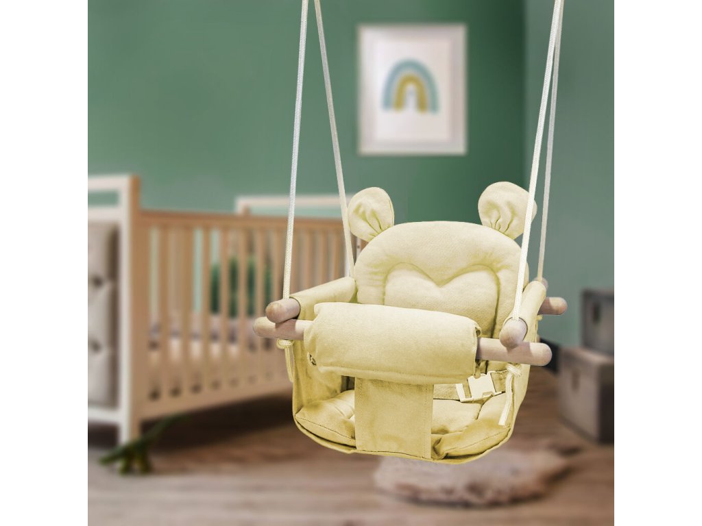 Komfort, bezpečí, zábava... méďa přesně ví co spokojená miminka potřebují! Tato dětská houpačka nabízí nejen spousty hodin legrace ale i aktivní odpočinek. Konstrukce z bukového dřeva a sedátko ze 100% bavlny zajišťují plné pohodlí a bezpečnost při houpání. Lana se 2 karabinami jsou výškově nastavitelná (až 180 cm). Díky tlumeným barvám a jednoduchému designu je houpačka také brilantním doplňkem do pokojíku! Hlavní vlastnosti: nosnost 60 kgvýškově nastavitelné lano (max. 180 cm)vyrobeno ze 100% bavlnyroztomilý design s medvídkem
