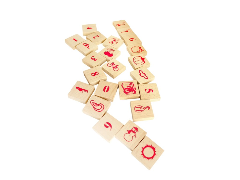 Rozměry: kostka obdélníková 6x3x3 cm, kostka znak 3x3x1,2 cm