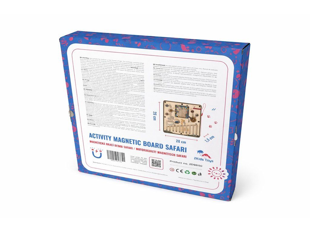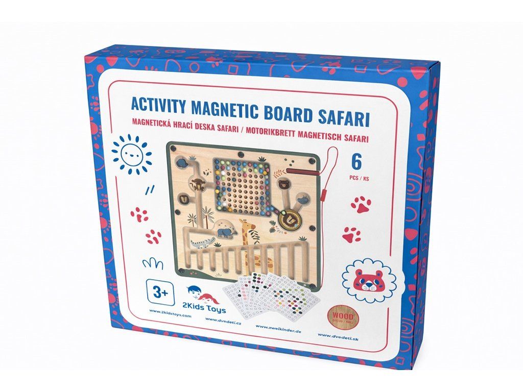 Magnetická hrací deska s motivem roztomilých zvířátek je skvělým pomocníkem pro rozvoj jemné motoriky, logického myšlení a prostorové orientace dětí. Uvnitř čtvercového labyrintu se nachází zásobník s barevnými kuličkami, které se pomocí šňůrkou připojeného magnetického pera přesouvají po vyfrézovaných cestičkách ke zvířátkům nebo do zásobníků. Pero je vždy po ruce a snadno se s ním manipuluje. Děti mohou skládat jednoduché obrázky podle pěti přiložených předloh, vést kuličky ke správným zvířátkům, nebo je třídit do zásobníků podle množství, od nejmenšího po největší. To vše podporuje představivost, koncentraci i schopnost porovnávat a třídit. Hra také rozvíjí jemnou motoriku a koordinaci ruka-oko. Magnetická deska je chráněna průhledným krytem, díky kterému se kuličky nevysypou a hra je tak zcela bezpečná a bez nepořádku. Hračka je ideální pro domácí hraní i jako pomůcka do školek či herních koutků. Hlavní vlastnosti: magnetické pero připojené k descebezpečný průhledný kryt 5 předloh pro vytváření obrázků podporuje představivost, koncentraci a schopnost porovnávat a tříditrozvíjí koordinaci ruka-oko a jemnou motorikuvhodné od 3 let