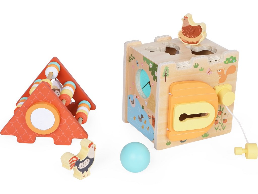 Jaký to krásný pohodový den na farmě! Tato motorická kostka přináší spoustu zábavy, díky které bude moci Vaše dítě rozvíjet svou zručnost, zvídavost a zejména jemnou motoriku. Hračka lze rozdělit na 2 části - kostku s veselými motivy farmy a na počítadlo. Na všech stranách domečku je něco, co stojí za prozkoumání - ať už se jedná o vkládání, posouvání, zámek či již zmíněné počítadlo (sloužící také jako střecha). Hlavní vlastnosti: podporuje jemnou motoriku a koordinaci ruka-okopodněcuje kreativní myšlení a vývoj představivostirobustní a odolné provedeníhravý design s motivem farmy