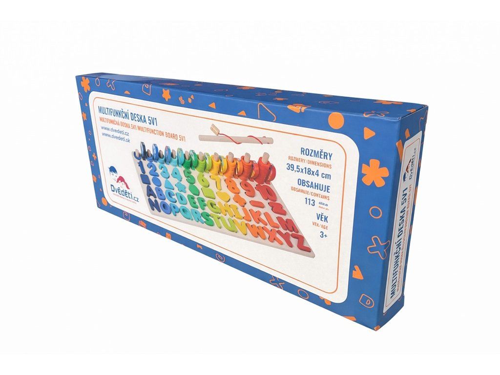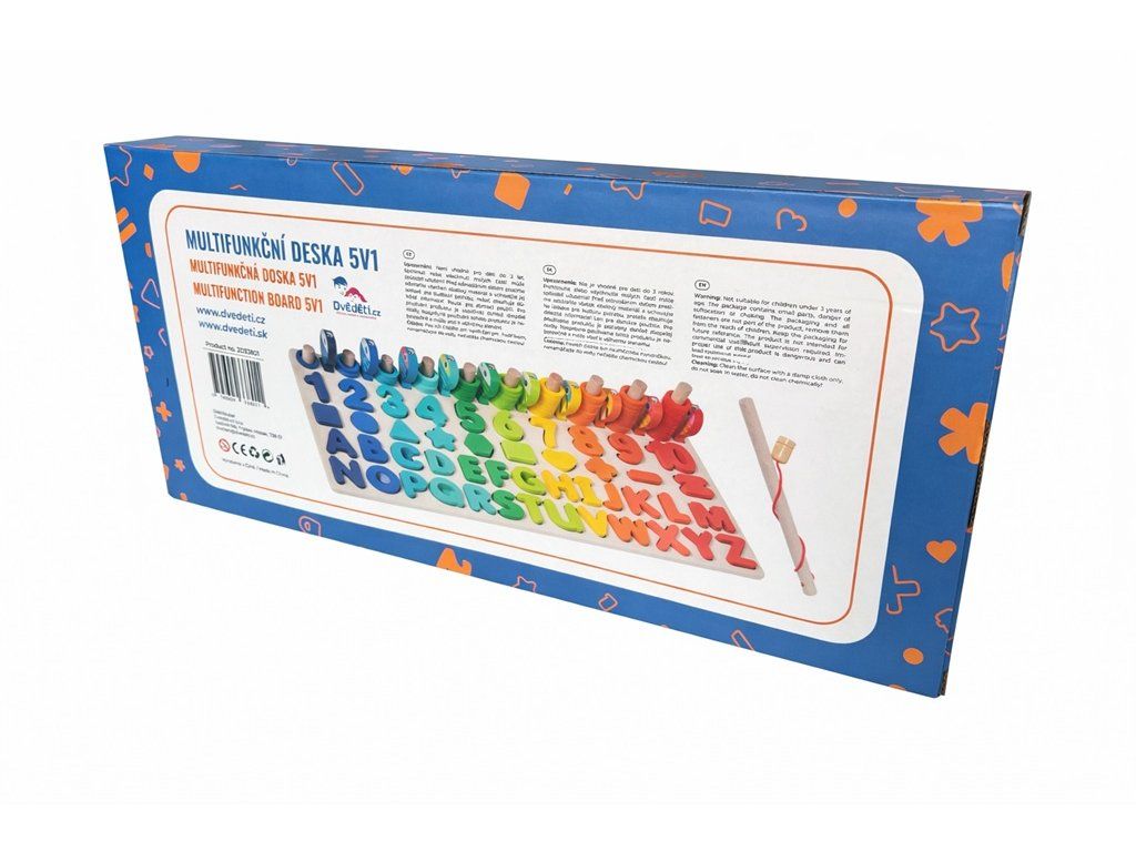 Každý malý šikula si najde to své! Dřevěná multifunkční deska nabízí edukativní hru a pomáhá dětem v koordinaci motoriky, zlepšování koncentrace a rozvoji logického myšlení. Jejím cílem je nejen učení přeměnit na zábavu, ale také vyvinout k učení u nejmenších kladný vztah. Vedle rozpoznávání čísel, tvarů a barev lze v této hře "rybařit" či stohovat kroužky na sebe. Všechny části dřevěné skládačky jsou dimenzovány tak, aby byly ideální pro drobné dětské ruce. Hlavní vlastnosti: multifunkční edukativní hraideální pro trénování motoriky a posílení logického myšlenípodporuje kreativitumění učení na zábavuveselý, pestrý design