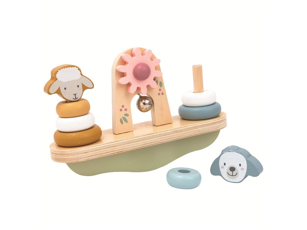 Ovečka nebo pejsek? Kdo udrží rovnováhu? Zábavná balanční hračka, která spojuje skládání, nasazování na tyč, objevování i trošku fyziky! Na jedné straně ovečka, na druhé straně pejsek, které si děti samy sestaví z dřevěných kroužků a hlavičky nasazením na tyč. Plošina se při každém pohybu naklání. Kdo poskládá zvířátka tak, aby byla v rovnováze? Hračka rozvíjí jemnou motoriku, koordinaci ruka-oko i logické myšlení. Učí děti základům rovnováhy, poměru a váhy, a zároveň je díky roztomilému zvířecímu motivu bude bavit. Příjemné pastelové a zemité odstíny barev spolu s kvalitním přírodním dřevem dělají z této hračky krásný doplněk každého pokojíčku. Hlavní vlastnosti: balanční hračka ze dřeva s tyčemi pro nasazovánís ovečkou a pejskemrozvíjí jemnou motoriku, koordinaci ruka oko a logického uvažovánínapomáhá pochopení rovnováhy a základních fyzikálních principůkvalitní dřevěné zpracování v přírodních a zemitých barváchvhodné pro děti od 18 měsíců
