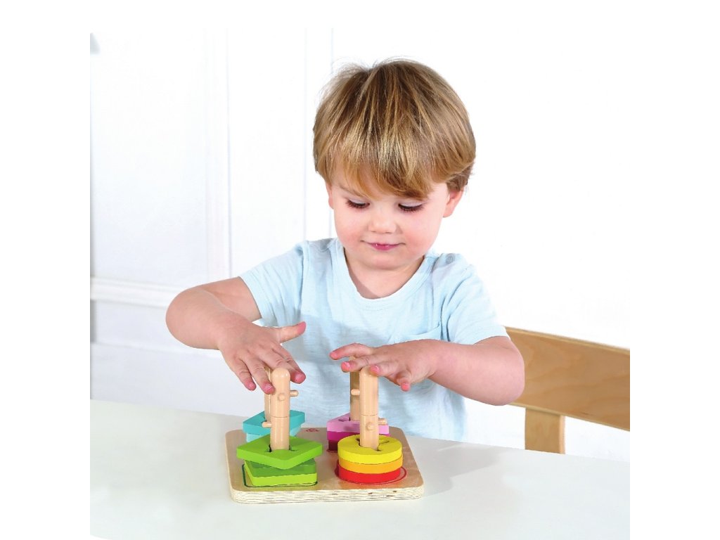 Hrou s jednoduchým hlavolamem mohou děti cvičit svou zručnost a trpělivost. Při třídění se mohou zároveň zábavně učit rozpoznávat tvary, barvy a setkat se s prvním počítáním. Vyrobeno z FSC® dřeva. Hlavní vlastnosti: robustní dřevěné provedeníobsahuje základnu a 12 dílů k nasazovánípomáhá rozvíjet obratnost, koncentraci a jemnou motoriku Značka a certifikát FSC® (Forest Stewardship Council) zaručuje, že dřevo, ze kterého byl produkt vyroben, nebylo vytěženo nelegálně a pochází z lesů obhospodařovaných šetrným či přírodě blízkým způsobem, ve kterém jsou dodržovány přísné environmentální a sociální požadavky. Značka FSC® na výrobku znamená, že svým nákupem pomáháte chránit lesy a podporujete šetrné, odpovědné či přírodě blízké hospodaření, díky kterému jsou naše lesy stabilnější, zdravější, mají přirozenou druhovou skladbu a lépe odolávají negativním následkům klimatických změn.