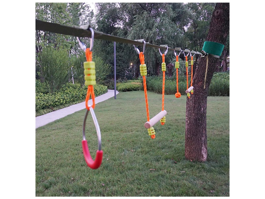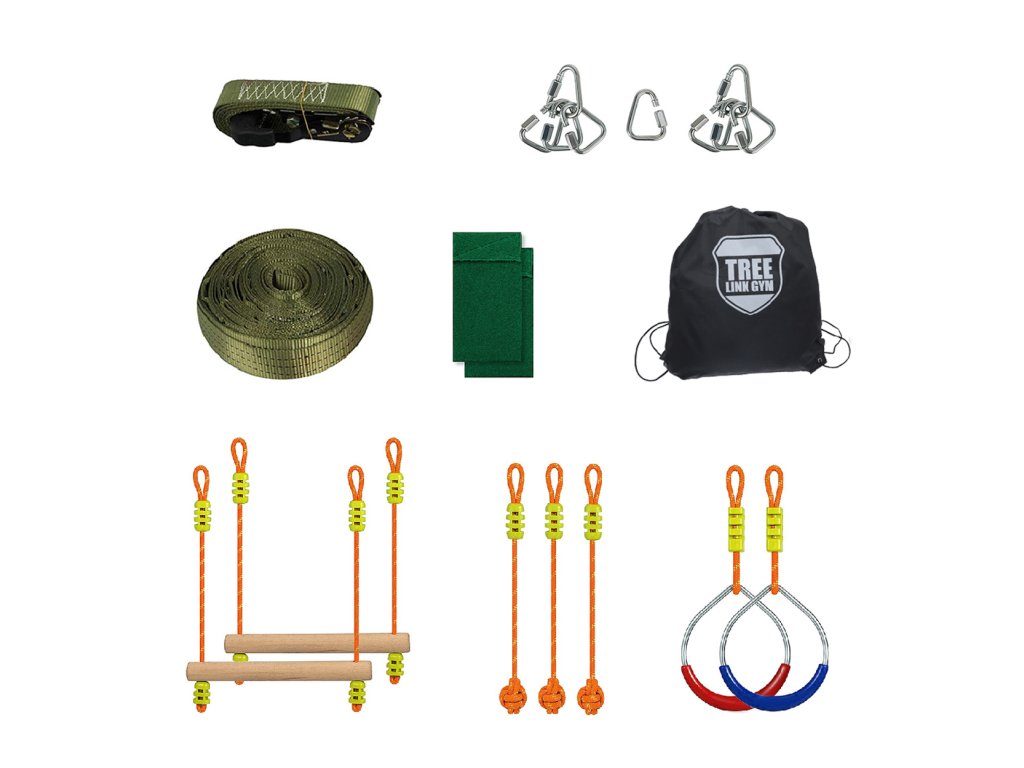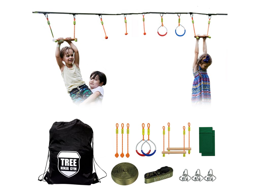 Buďte silní a obratní jako ninjové, překonejte jejich výcvikovou dráhu! Základem dráhy je odolný nylonový pás napnutý mezi dvěma stromy za pomoci robustní kovové račny. Na páse přitom může být pomocí karabin zavěšena řada různých překážek, které lze individuálně kombinovat, a dosáhnout tak různé obtížnosti. Lze jej ovšem využít i samostatně pro tzv. „slackline“. Díky praktické tašce z odolného umělého vlákna může být dráha snadno sbalena a připravena Vás doprovázet při všech toulkách a dobrodružstvích v přírodě. Součástí balení jsou: taška, pás s 9 úchyty a 9 karabinami k uchycení překážek, 1 upínací pás s ráčnou, 2 chrániče stromů, 2 překážkové hrazdičky, 2 překážkové kruhy a 3 překážkové lanové úchyty Hlavní vlastnosti:nosnost dráhy 180 kg3 různé druhy překážekvariabilní systém zavěšenílze využít i pro slacklinepraktické balení
