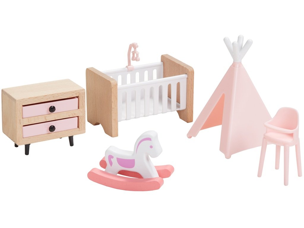 Skvělá sada dřevěného nábytku, díky které si můžete vybavit jakýkoli domeček. 5 v 1, to je ložnice, kuchyně, obývací pokoj, dětský pokoj,koupelna a k tomu i celá rodinka. Nádherně detailní dřevěné kousky pomohou mladým představám znovu a znovu vytvářet okouzlující interiérové scény. Skládá se z 36 kusů. Žádný domeček pro panenky není kompletní bez této sady! Hlavní vlastnosti: obsahuje 36 ksvhodné jako kompletní sada do prvního domečku našich malých princezen trénuje komunikační dovednosti a koordinaciinspiruje ke kreativní a představivé hře