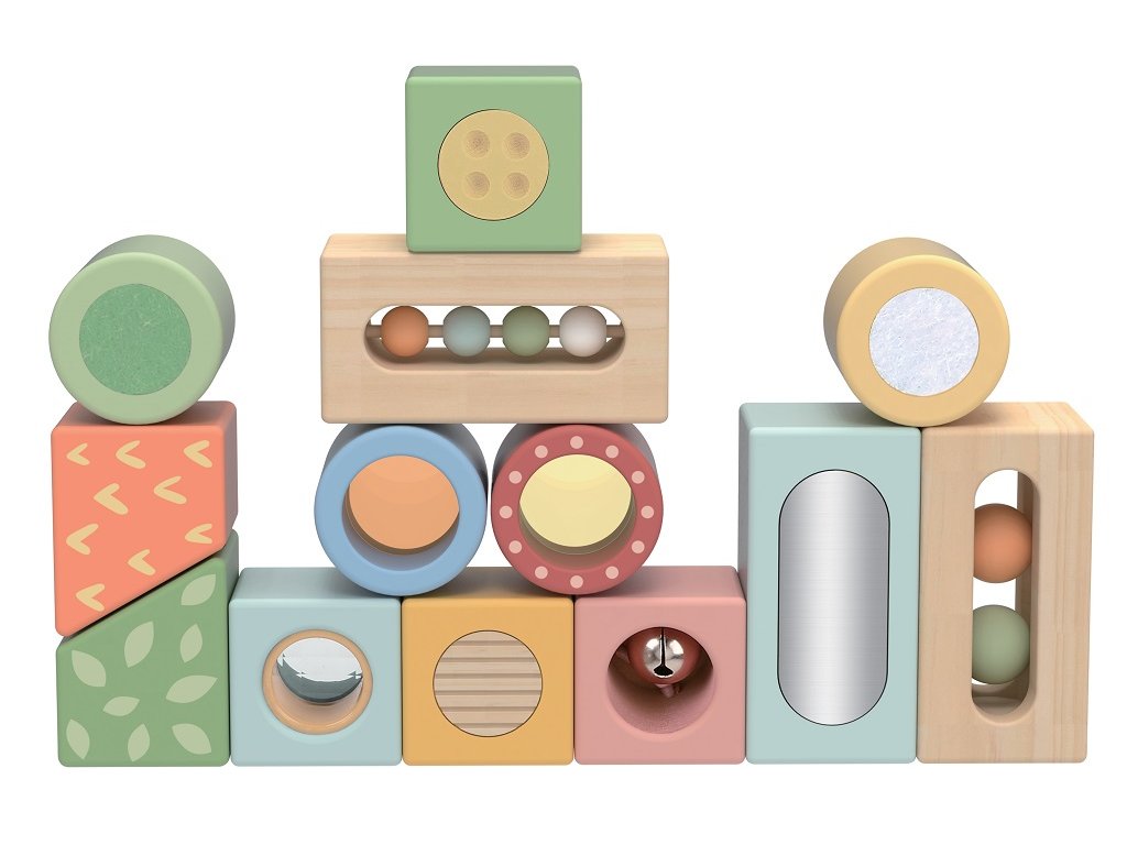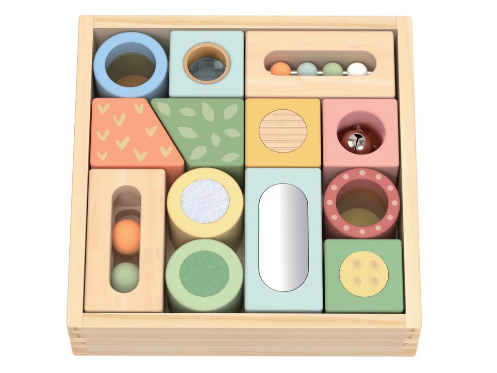 Právě jste se ocitli v ráji tvarů, barev a zvuků! Tyto kostky byly navrženy tak, aby podněcovaly dětské smysly a rozvíjely jejich kognitivní a motorické dovednosti. Poskytují dětem příležitost učit se o různých materiálech, texturách, barvách a zvucích, což přispívá k jejich rozvoji a vzdělání. Díky své rozmanitosti mohou kostky dopomoci stimulovat představivost k roztodivným stavbám nebo příběhům. Hlavní vlastnosti: zrakové, sluchové a hmatové atrakcepodporuje jemnou motoriku a představivost Značka a certifikát FSC® (Forest Stewardship Council) zaručuje, že dřevo, ze kterého byl produkt vyroben, nebylo vytěženo nelegálně a pochází z lesů obhospodařovaných šetrným či přírodě blízkým způsobem, ve kterém jsou dodržovány přísné environmentální a sociální požadavky. Značka FSC® na výrobku znamená, že svým nákupem pomáháte chránit lesy a podporujete šetrné, odpovědné či přírodě blízké hospodaření, díky kterému jsou naše lesy stabilnější, zdravější, mají přirozenou druhovou skladbu a lépe odolávají negativním následkům klimatických změn.