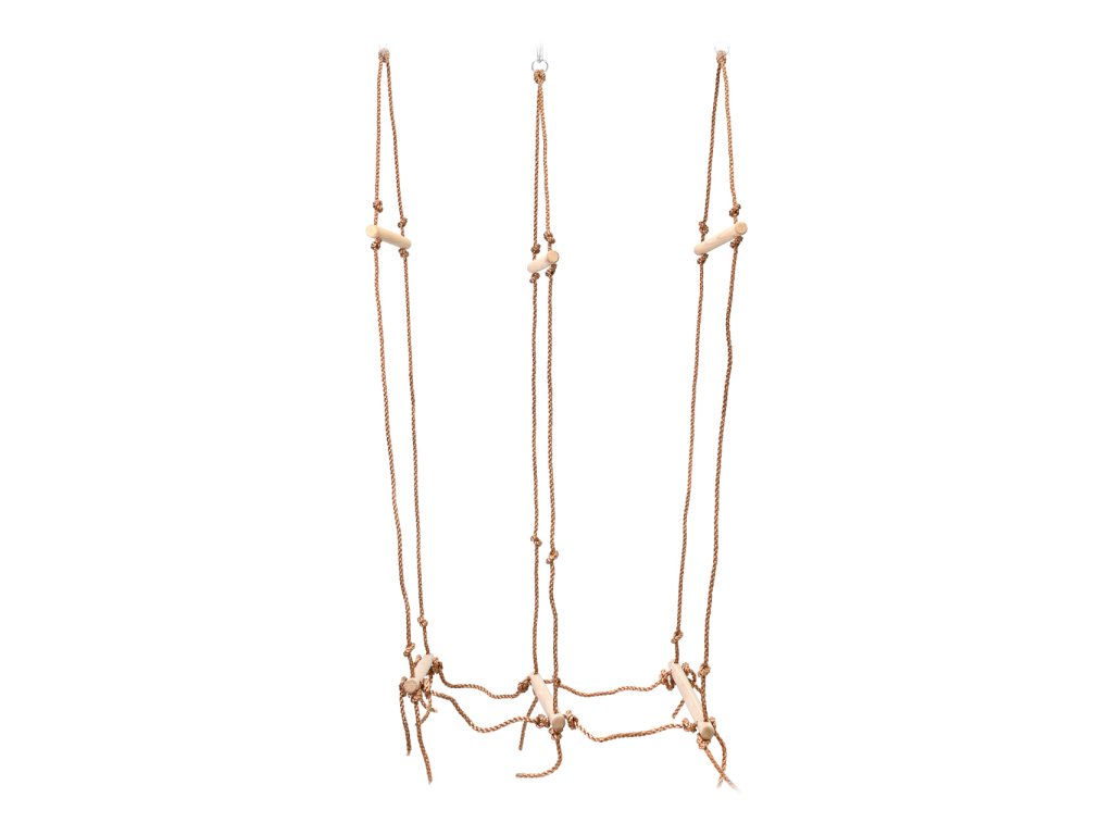 Visutý lanový most pro všechny malé dobrodruhy, kteří mají pro strach uděláno. Tři nášlapné příčky jsou ve výšce zároveň vybaveny madly pro jistý přechod přes překážku. Hlavní vlastnosti:nosnost 100 kgcelková délka 85 cm, závěsná výška 170 cmrozestup nášlapných příček 40 cmvýška mezi příčkami a madly 120 cm