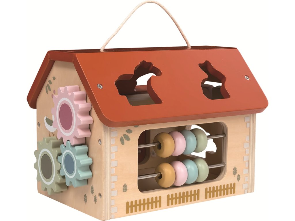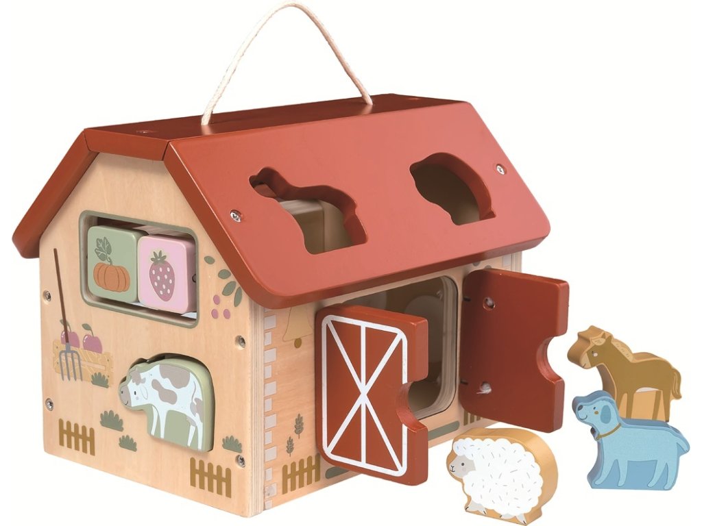 Objevte rozmanitý svět farmy se zvířátky prostřednictvím originální vkládačky ve tvaru domečku s aktivitami, která děti nejen zabaví, ale rozvíjí také jejich motorické dovednosti, soustředění a logické myšlení. Dřevěná farma má ve střeše 4 otvory pro vkládání zvířátek, korálkový labyrint, otočná ozubená kolečka, otevírací vrata, a motivuje děti ke zkoumání, učení i hraní. Barevné provedení, přehledné uspořádání a kvalitní zpracování dělají z této hračky ideální vzdělávací pomůcku pro malé objevitele doma i ve školce. Vkládačka je opatřena uchem pro snadné přenášení. Hlavní vlastnosti: farma s vkládacími tvaryzábava a učení v jednomrozvíjí jemnou motoriku a koordinaci pohybůpodporuje logické myšlení a samostatné objevovánís praktickým uchempěkný doplněk do dětského pokoje či hernyideální dárekvhodné pro děti od 1 roku
