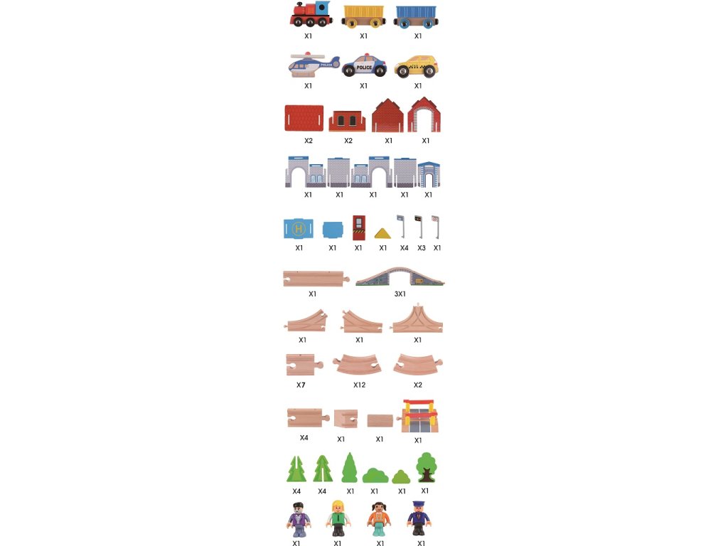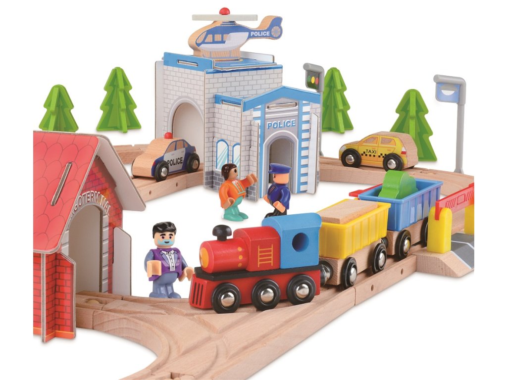 Tato detailně propracovaná dřevěná vláčkodráha potěší každé zvídavé dítě. Podporuje fantazii, rozvíjí jemnou motoriku a nabízí nekonečně mnoho herních scénářů. Stačí naložit náklad, vyrazit přes most a během jízdy potkat policejní stanici s heliportem, taxi službu nebo zvedací závoru. Každý den může být jiný – a každá jízda nový příběh! Hlavní vlastnosti: 80 dílů kompletní sada s kolejemi, vláčkem, vagony, auty, postavičkami a spoustou doplňků rozvíjí jemnou motoriku a kreativitupodporuje představivost, obratnost a koordinacikvalitní dřevěné zpracování s barevnými detailykompatibilní s dalšími dřevěnými vláčkodráhami