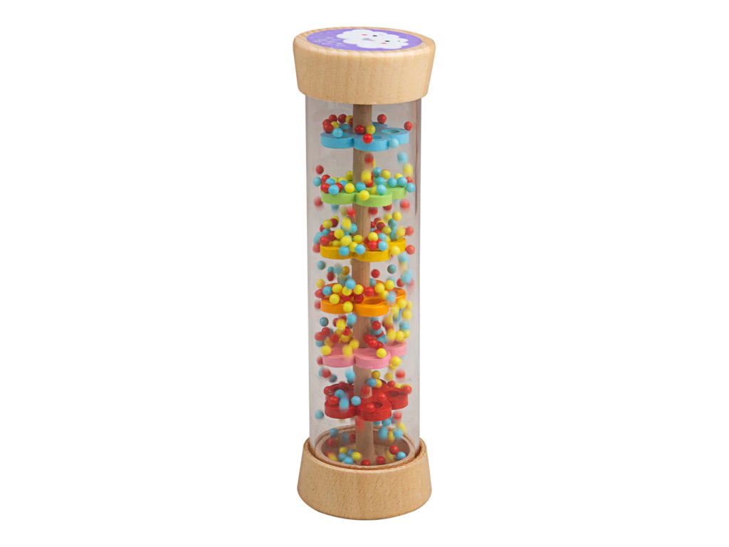 Roztomilá dřevěná hračka, která vydává zvuky deště. Při otáčení válcovité hračky se začnou pohybovat barevné perličky uvnitř, vytvoří zajímavý vizuální i zvukový efekt. Na obou stranách najdete dřevěné zátky s krásnou ilustrací slunce a mraku. Vyrobeno z kvalitních materiálů ze zodpovědných zdrojů. Splňuje evropské bezpečnostní standardy. Hlavní vlastnosti: poutavý zvukový a vizuální efektodolné provedení