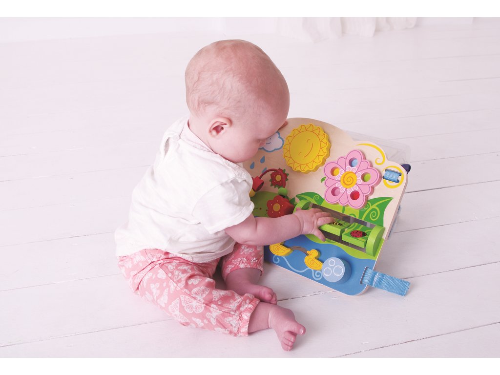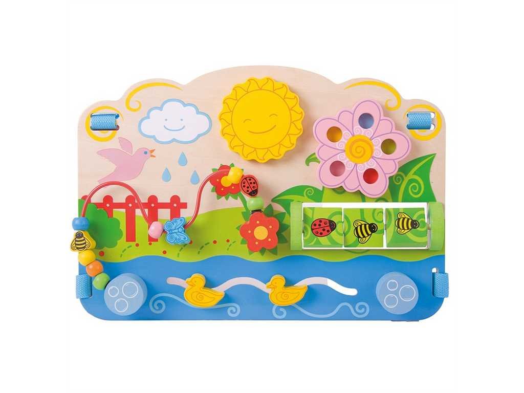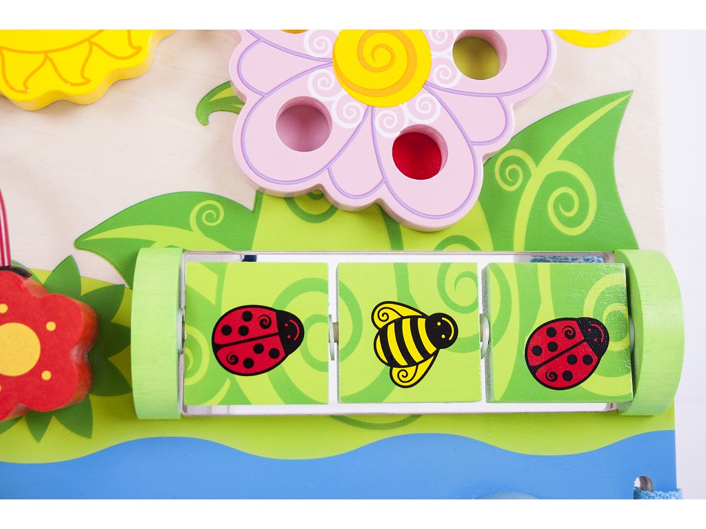 Podpořte zručnost a dovednosti svých ratolestí s pomocí této dřevěné desky s motivem květů! Tato hračka má nastavitelné úchyty a lze ji připevnit i k postýlce. Tato jedinečná dřevěná hračka pro miminko obsahuje otáčející labyrint, otočné berušky a další zábavné prvky. Malé ruce mohou také pomáhat berušce, čmelákovi a motýlovi pohybovat se po korálkovém labyrintu nahoru a dolů a také mohou posunovat kačenky. Vyrobeno z vysoce kvalitních, zodpovědně získaných materiálů. Splňuje aktuální evropské bezpečnostní normy. Vhodné od 6 měsíců. Hlavní vlastnosti: podporuje zručnost a smyslové dovednostinabízí řadu různých aktivit určených k zapojení motoriky u nejmenšíchvyrobeno z vysoce kvalitních, zodpovědně získaných materiálů