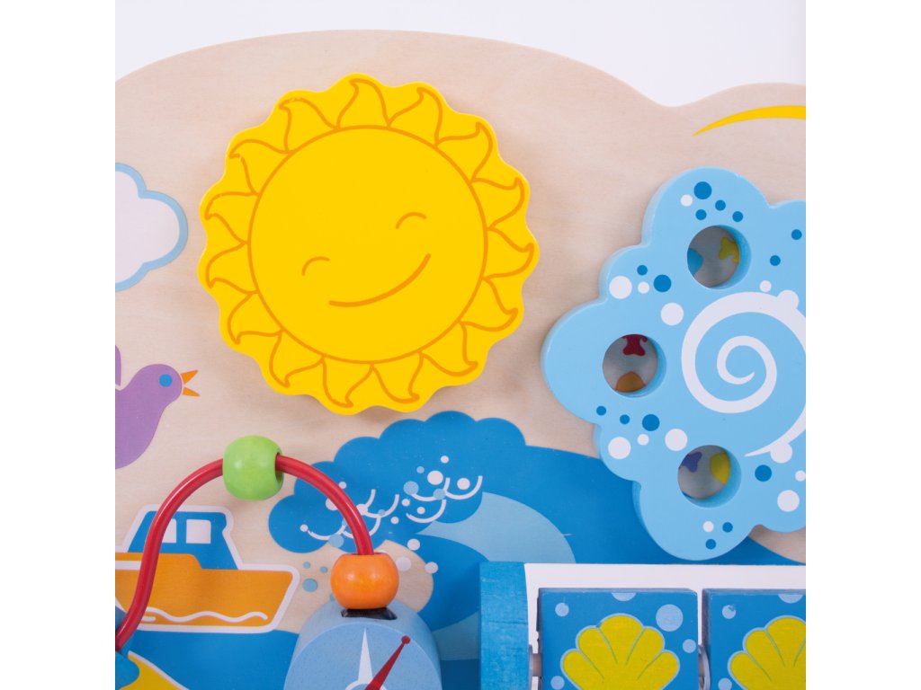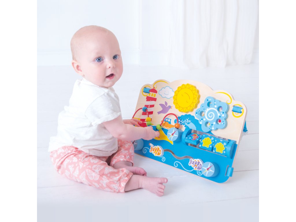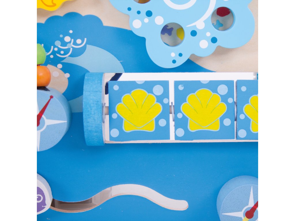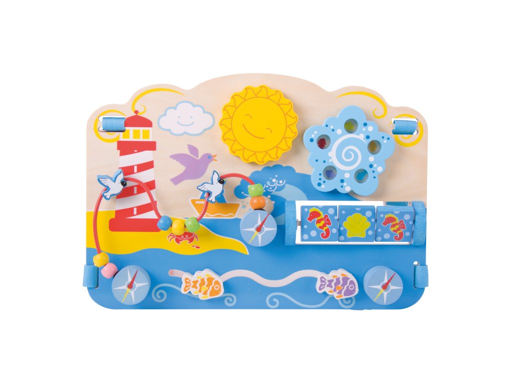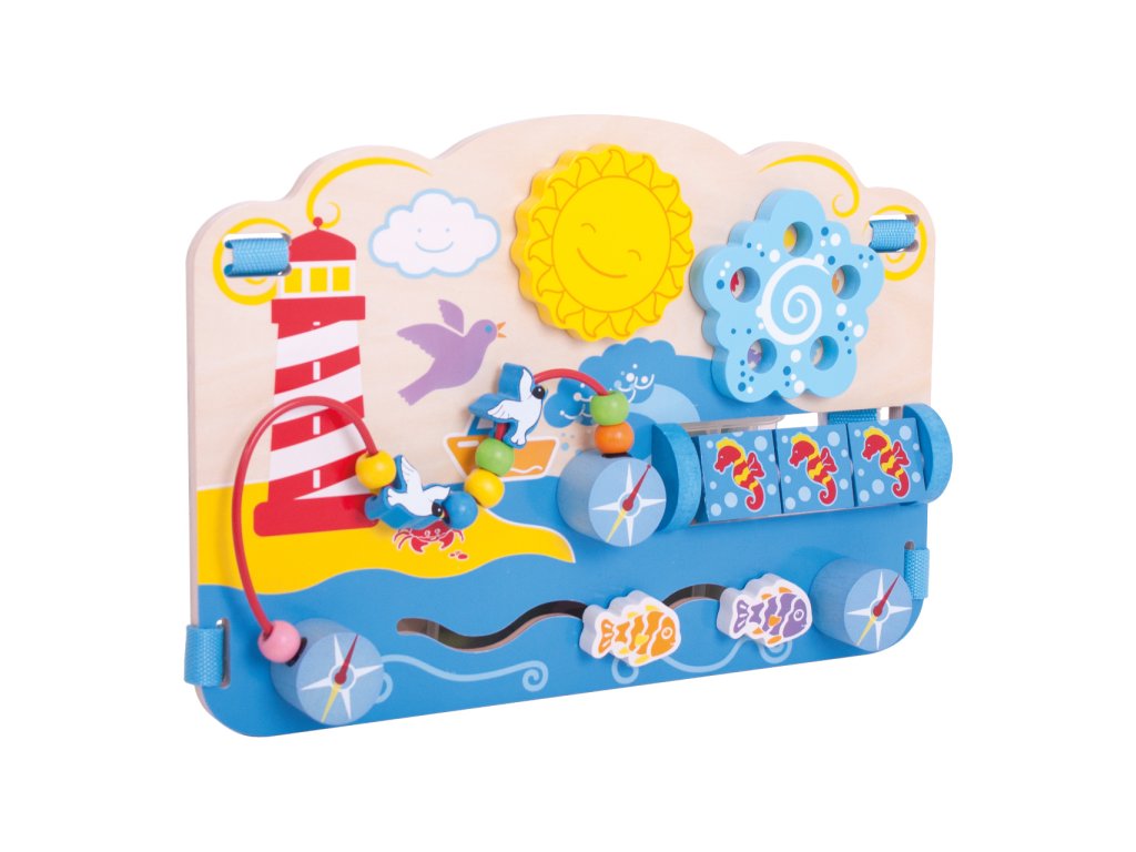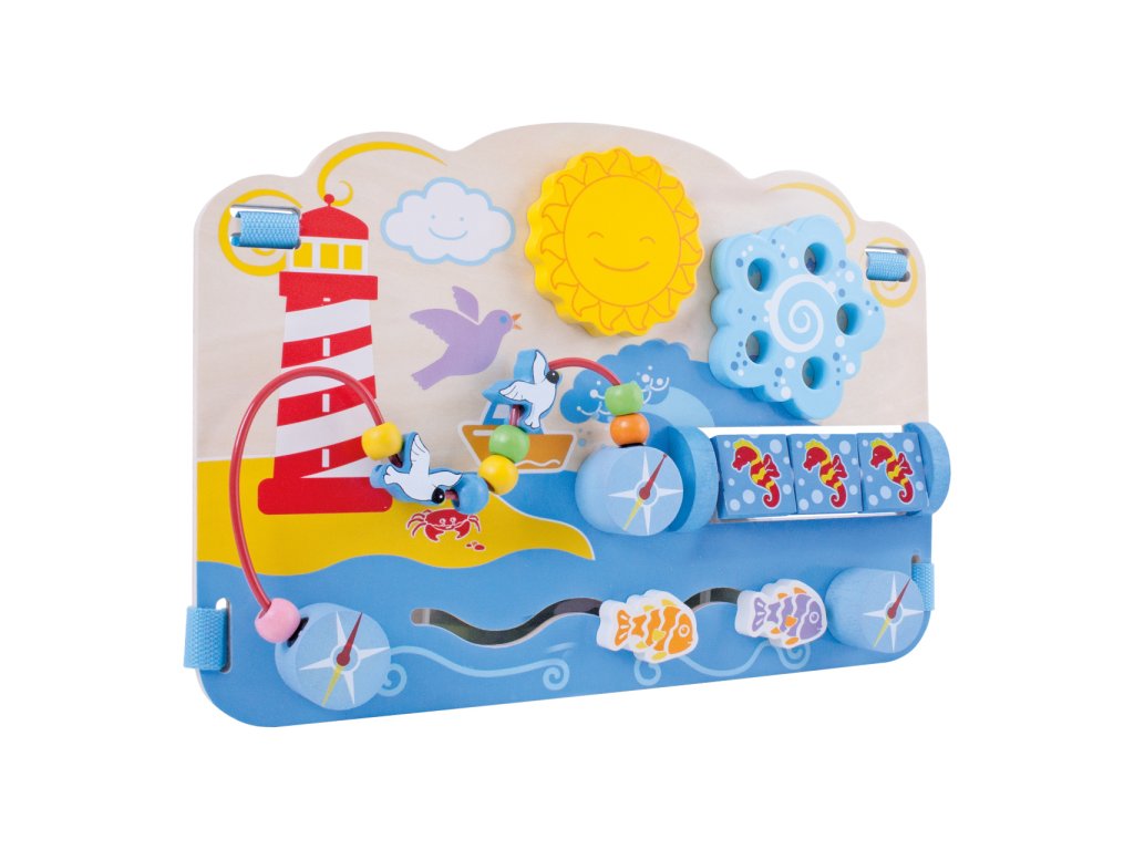 Podpořte zručnost a dovednosti svých ratolestí s pomocí této dřevěné desky s motivem moře! Tato hračka má nastavitelné úchyty a lze ji připevnit i k postýlce. Tato jedinečná dřevěná hračka pro miminko obsahuje otáčející labyrint, otočné mořské koníky a další zábavné prvky. Malé ruce mohou také pomáhat rackům pohybovat se po korálkovém labyrintu nahoru a dolů a také mohou posunovat rybičky. Vyrobeno z vysoce kvalitních, zodpovědně získaných materiálů. Splňuje aktuální evropské bezpečnostní normy. Vhodné od 6 měsíců. Hlavní vlastnosti: podporuje zručnost a smyslové dovednostinabízí řadu různých aktivit určených k zapojení motoriky u nejmenšíchvyrobeno z vysoce kvalitních, zodpovědně získaných materiálů