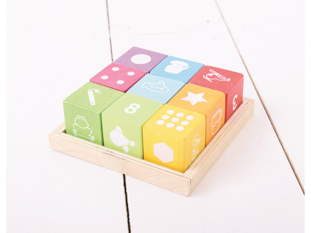 S těmito dřevěnými a barevnými ABC kostkami můžete u svého dítěte budovat nejen slovní zásobu, ale také čtení a pravopisné dovednosti. Můžete dávat dohromady jednoduchá slova, nebo jen prostě s pomocí kostek stavět např. vysovkou věž. Dodává se s dřevěným podnosem pro lepší skladování. Pomáhá rozvíjet obratnost a koncentraci. Vyrobeno z vysoce kvalitních, zodpovědně získaných materiálů. Splňuje aktuální evropské bezpečnostní normy. Obsahuje 10 hracích prvků. Hlavní vlastnosti: obsahuje 9 kostek a 1 základní deskupomáhá rozvíjet obratnost a koncentracirozvíjí slovní zásobu