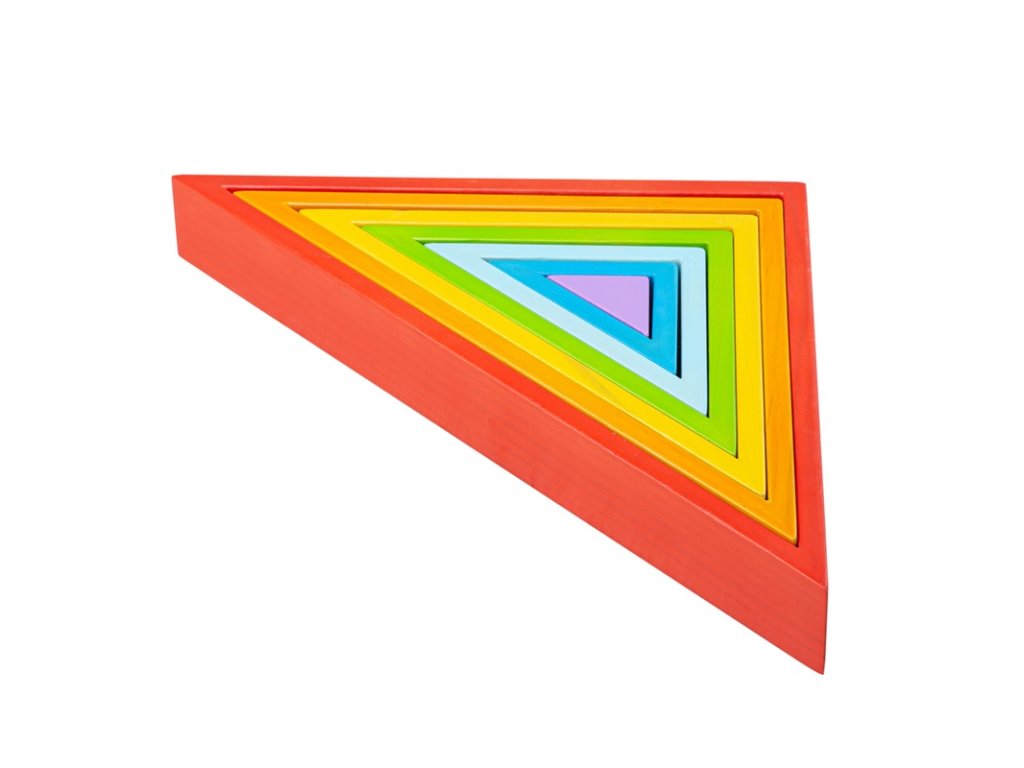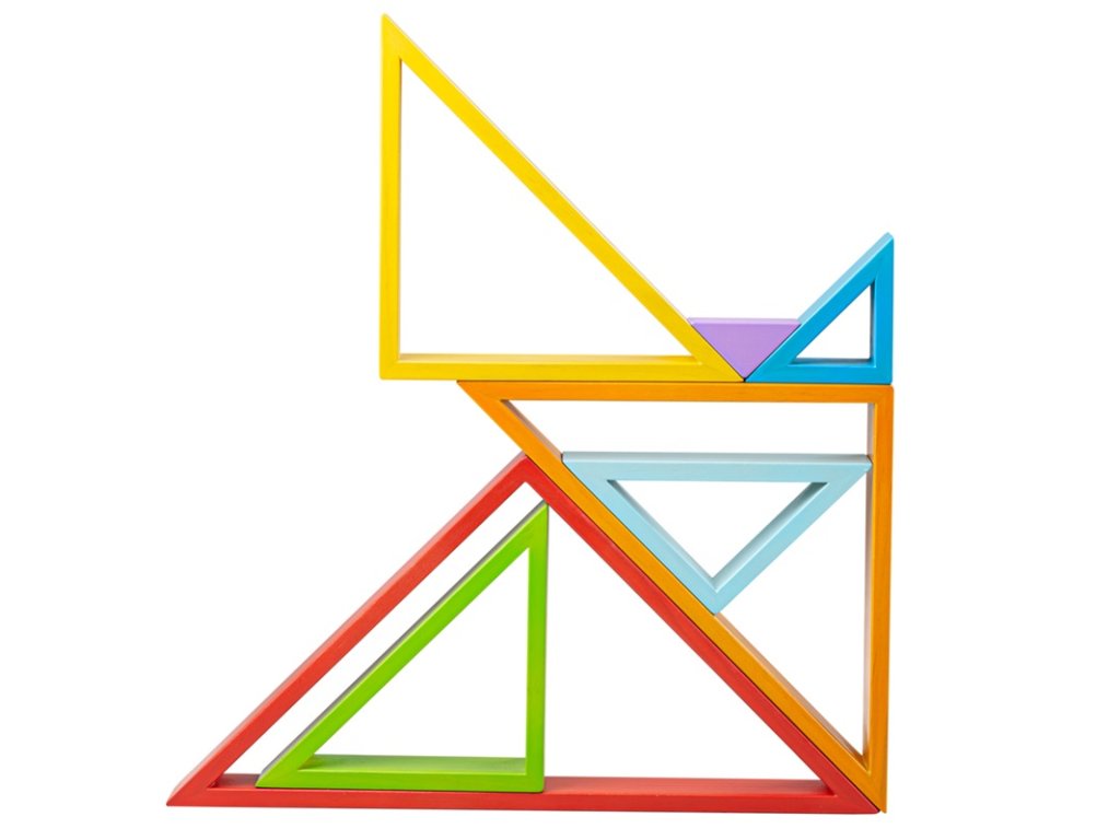 Skládací a všestranná hra s nekonečnými možnostmi a kombinacemi. Nenajdete zde žádný návod ani doporučení, můžete skládat zcela dle představivosti. Děti se při hře také naučí rozeznávat barvy a tvary. Vyrobeno z pevného dřeva, barveno netoxickými barvami. Až si děti dohrají, mohou si barevnými trojúhelníky vyzdobit pokojíček. Podporuje rozvoj kreativity, zručnosti a prostorové představivosti. Vyrobeno z kvalitních materiálů ze zodpovědných zdrojů. Splňuje evropské bezpečnostní standardy. Hlavní vlastnosti: všestranná hra s množstvím kombinacínapomáhá k učení barev a tvarů