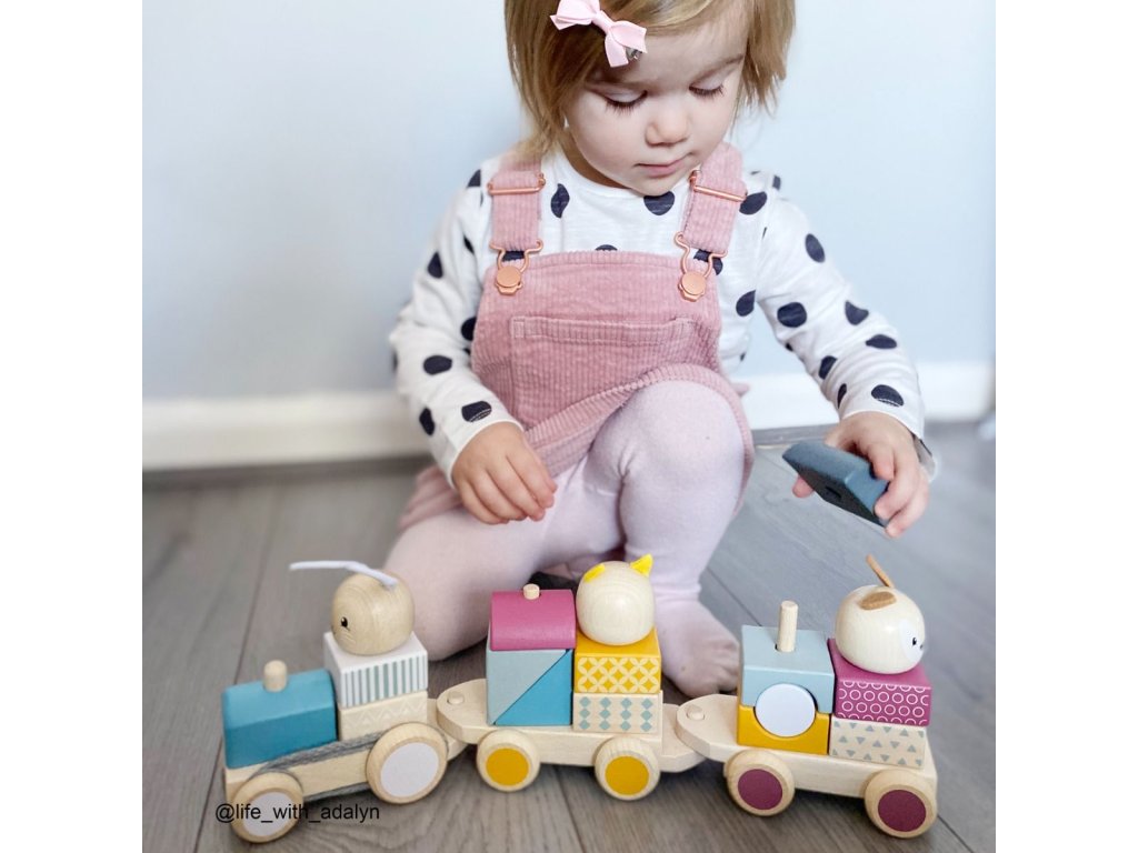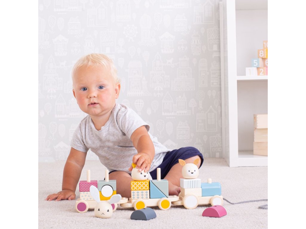 Všichni si nastupte do tohoto krásného tahacího vláčku! Je vyroben ze 100% FSC dřeva, je nádherně pestrobarevný a děti zabaví na dlouhé hodiny. V balení najdete mašinku a dva vagónky, také tři zvířecí pasažéry! Vláček mohou děti tahat bez problému po měkkém i tvrdém povrchu.Hračka je velmi univerzální, je nejen tahací, ale funguje také jako nasazovačka a puzzle. Kostičky můžete poskládat několika různými způsoby, to pomáhá s rozvojem zručnosti a dovednosti počítání.Hladké 100% FSC dřevo z eticky spravovaných lesů tvoří tento vláček, který je velký tak akorát pro dětské ruce. Kvalitní dřevo zaručuje, že vám hračka vydrží po mnoho let. Hlavní vlastnosti: 1 mašinka, 2 vagónky, 3 pasažéři16 dílkůkvalitní FSC certifikované materiálynetoxické barvy Značka a certifikát FSC® (Forest Stewardship Council) zaručuje, že dřevo, ze kterého byl produkt vyroben, nebylo vytěženo nelegálně a pochází z lesů obhospodařovaných šetrným či přírodě blízkým způsobem, ve kterém jsou dodržovány přísné environmentální a sociální požadavky. Značka FSC® na výrobku znamená, že svým nákupem pomáháte chránit lesy a podporujete šetrné, odpovědné či přírodě blízké hospodaření, díky kterému jsou naše lesy stabilnější, zdravější, mají přirozenou druhovou skladbu a lépe odolávají negativním následkům klimatických změn.
