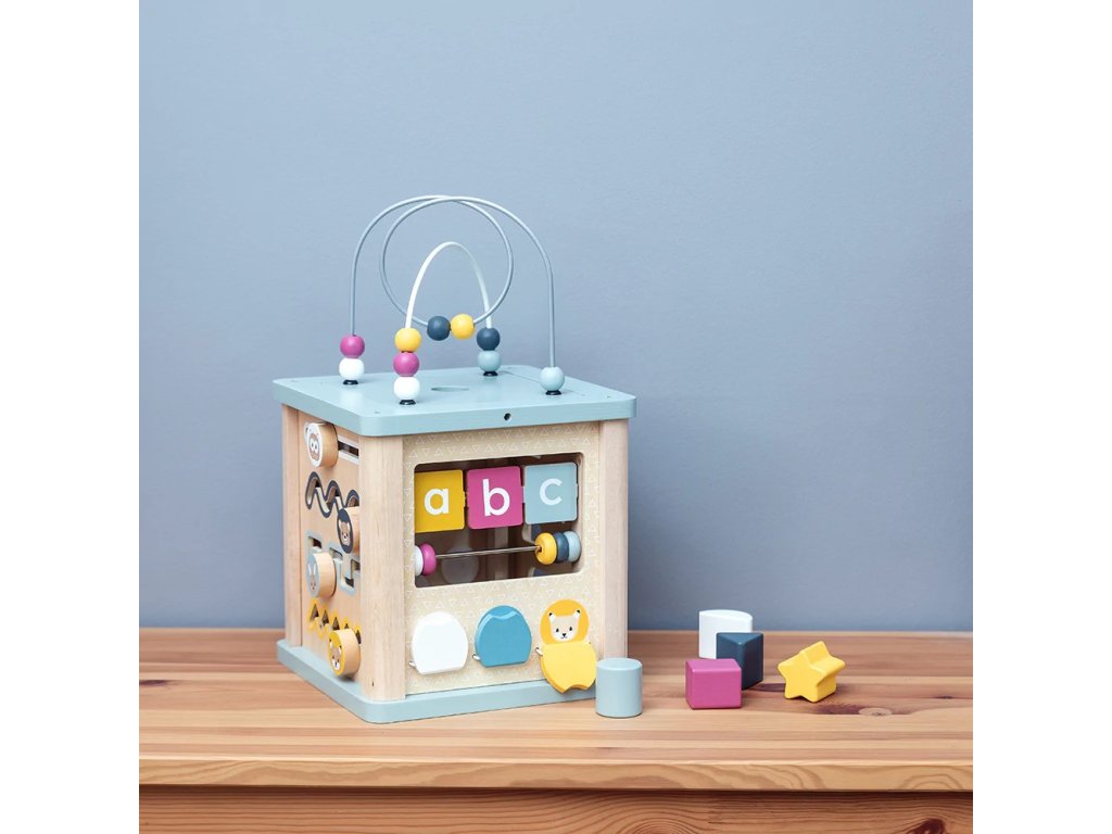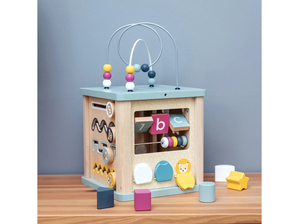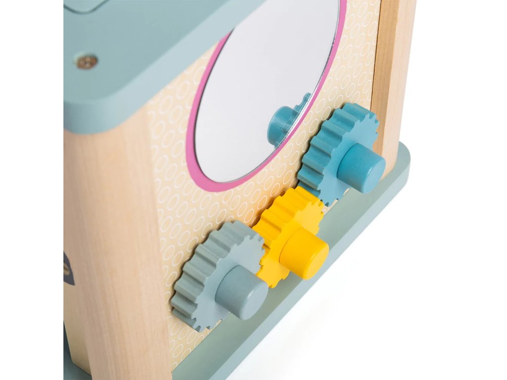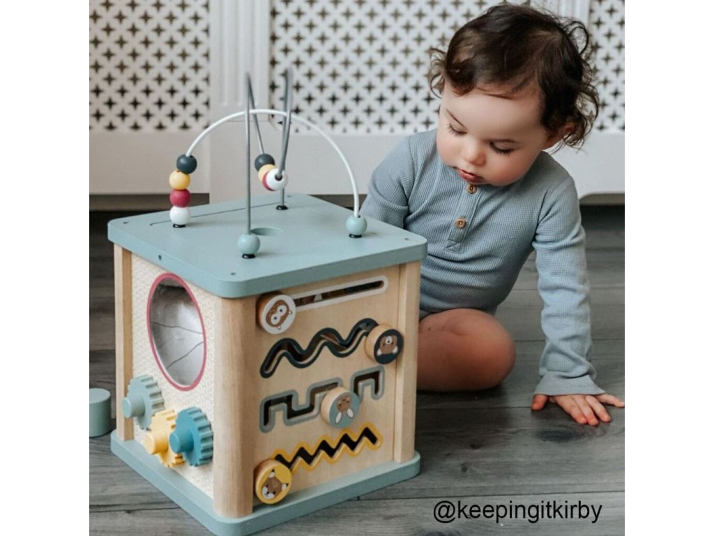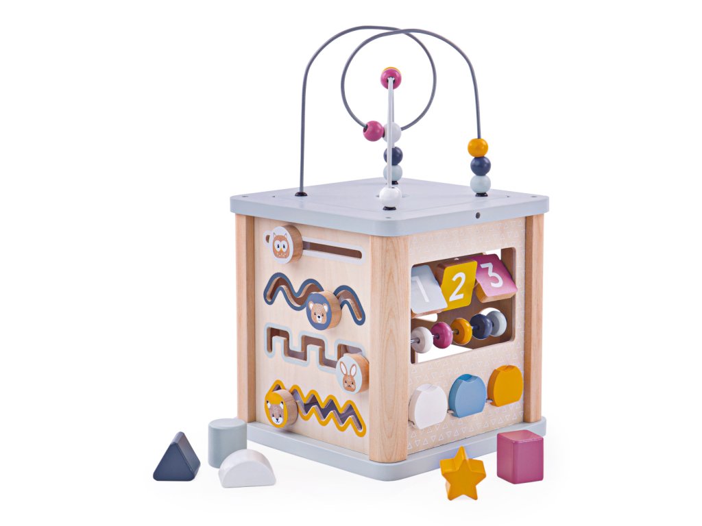 Děti se s touto motorickou kostkou zabaví na celé hodiny! Každá ze čtyř stran je plná hry, nadšení, zábavy. Tato rozmanitá motorická kostka je vyrobena ze stabilního 100% FSC® dřeva, najdete na ní například: vkládačku, kuličkovou dráhu, ozubená kolečka a další! Kombinace přírodního dřeva a jemných pastelových barev dělá tuto hračku perfektní pro chlapce i děvčata. Dřevěná motorická kostka dětem pomůže s rozvojem sociálních dovedností, komunikace, rozpoznávání čísel. Hračka byla vyrobena eticky z FSC certifikovaných materiálů. Jejich kvalita zaručuje dlouhou životnost kostky. Hlavní vlastnosti: 100% FSC® dřevobarevné a přírodní dřevomotorická hračkana každé straně jiná hrapodporuje vývoj sociální, jazykovýlak bezpečný pro děti Značka a certifikát FSC® (Forest Stewardship Council) zaručuje, že dřevo, ze kterého byl produkt vyroben, nebylo vytěženo nelegálně a pochází z lesů obhospodařovaných šetrným či přírodě blízkým způsobem, ve kterém jsou dodržovány přísné environmentální a sociální požadavky. Značka FSC® na výrobku znamená, že svým nákupem pomáháte chránit lesy a podporujete šetrné, odpovědné či přírodě blízké hospodaření, díky kterému jsou naše lesy stabilnější, zdravější, mají přirozenou druhovou skladbu a lépe odolávají negativním následkům klimatických změn.