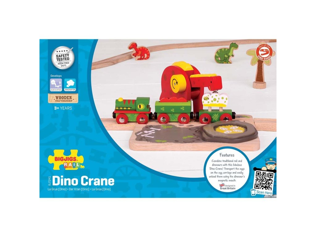 Fantasy dinosauří příslušenství vláčkodráhy, ve kterém se vzrušující svět železnice a prehistorické dinosauři doby spojili v jedno. Tento pohádkový dino jeřáb kombinuje tradiční funkci s prehistorickým designem. Děti mohou snadno přepravit dinosauří vejce na vagónek pomocí pohyblivého krku dinosaura a jeho magnetických úst. Balení obsahuje: základnu, dinosaura, 1 ks vagónek na nasazování. Hlavní vlastnosti: vláčkodráhy a jejich příslušenství značky Bigjigs Rail je možno kombinovat se všemi dalšími dřevěnými vláčkodráhami na trhuvyrobeno z kvalitních a zodpovědně získaných přírodních materiálůodpovídá současným evropským bezpečnostním normámpodporuje představivost, obratnost a koordinaci