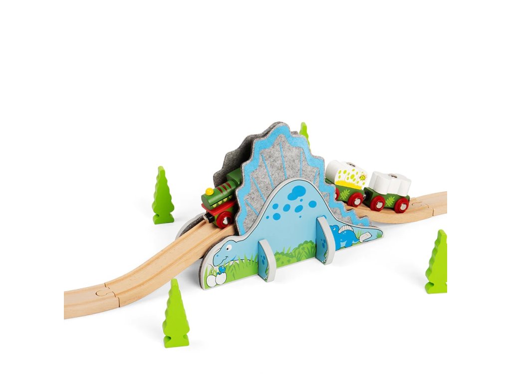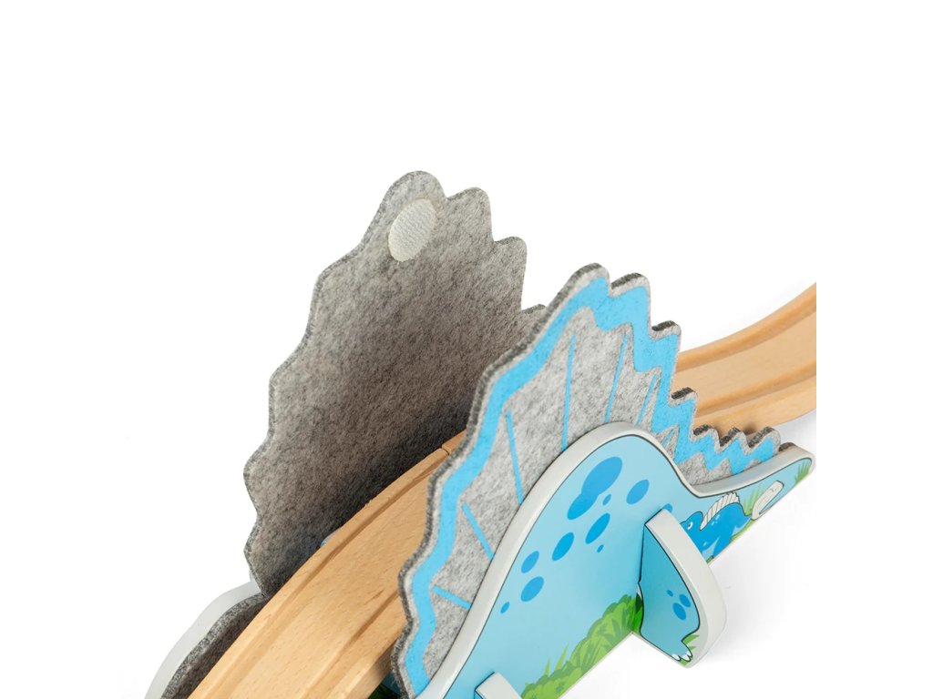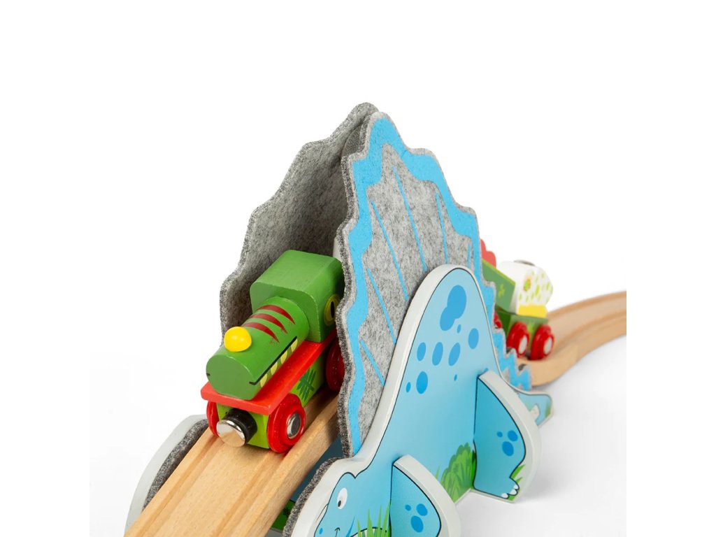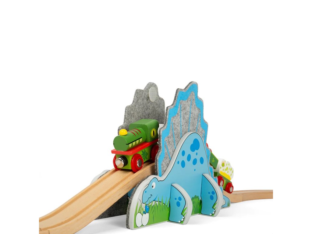 Dinosauří tunel je skvělou volbou pro děti, které mají rády dinosaury a dobrodružství. Přenáší malé dobrodruhy zpět do doby dinosaurů. Tato hračka přináší kombinaci zábavy, učení a fantazie do dětského světa. Díky detailnímu zpracování a realistickému dinosauřímu motivu s plstěným hřbetem, který se suchým zipem spojuje a vytváří vlakový tunel, je nejen zábavný, ale také vzdělávací. Děti se při hraní učí o různých druzích dinosaurů, jejich životním prostředí a způsobu života v prehistorických dobách. Zároveň podněcuje jejich představivost a kreativitu, když si vytvářejí vlastní příběhy o dobrodružstvích s dinosaury. Vláčkodráhy a jejich příslušenství značky Bigjigs Rail je možno kombinovat se všemi dalšími dřevěnými vláčkodráhami na trhu. Vyrobeno z vysoce kvalitních materiálů z odpovědných zdrojů. Odpovídá evropským bezpečnostním standardům. Hlavní vlastnosti: plstěný hřbet dinosaura2 ks stoupající/klesající kolej kompatibilní s vláčkodráhami Bigjigs Toysvhodné od 3 let