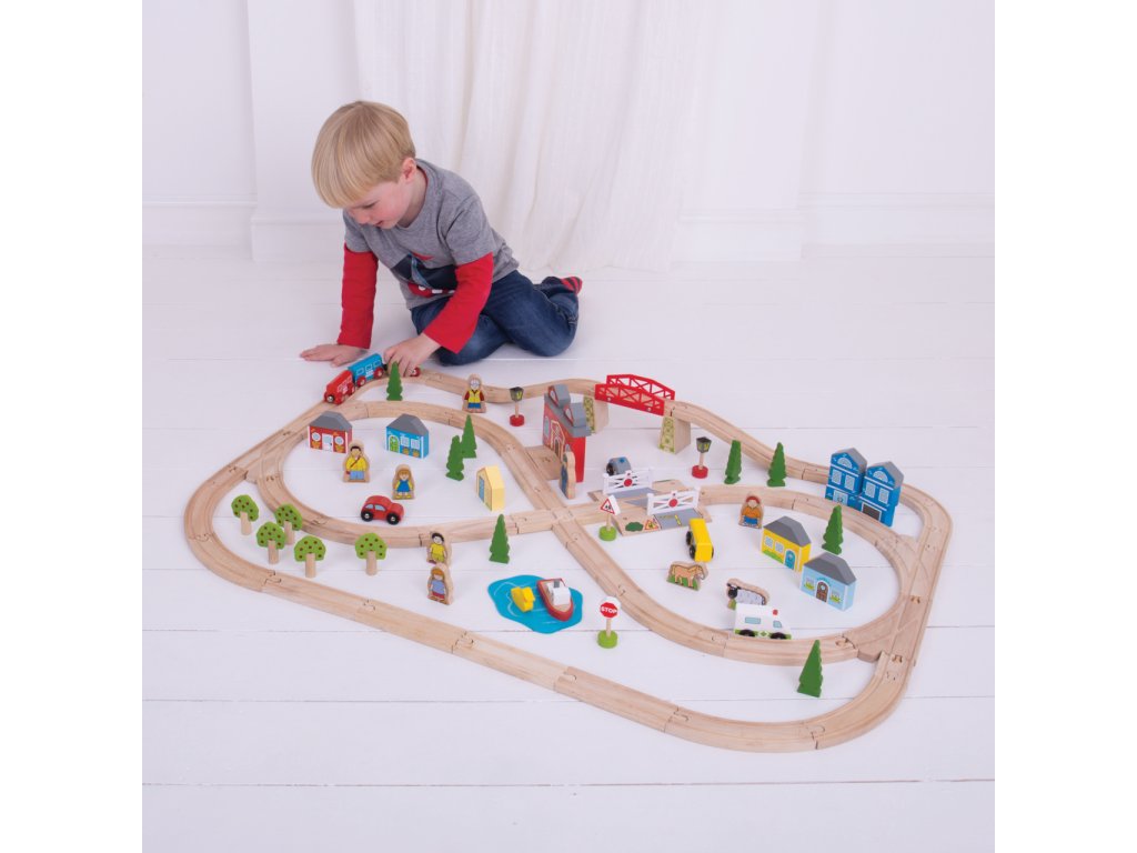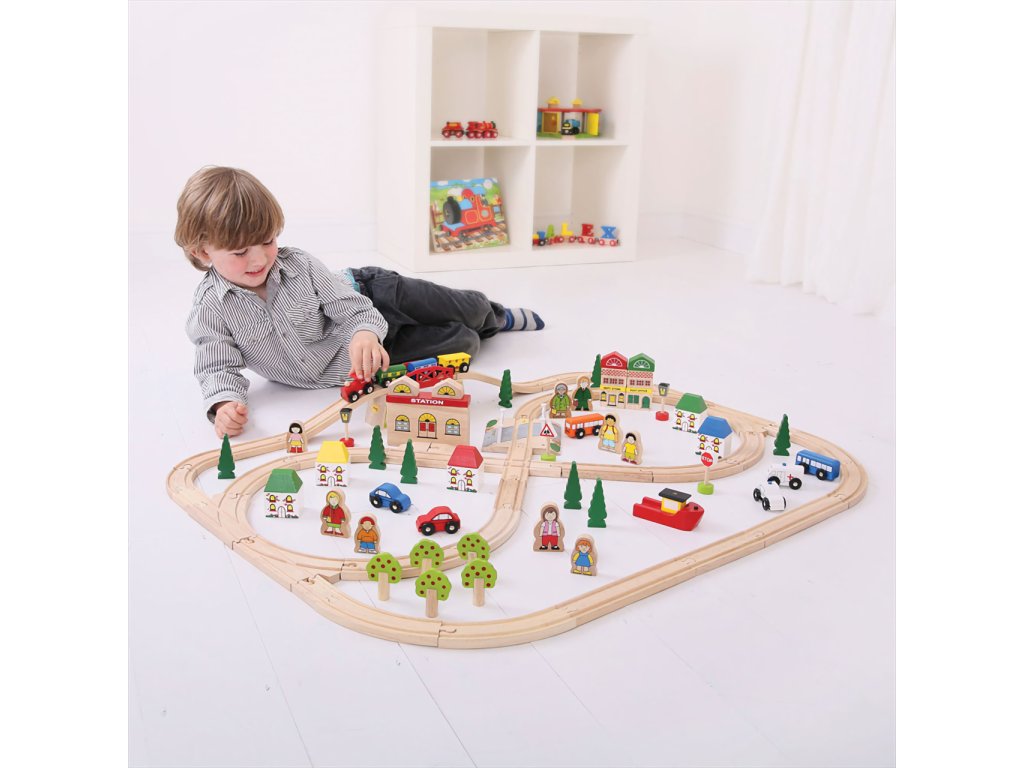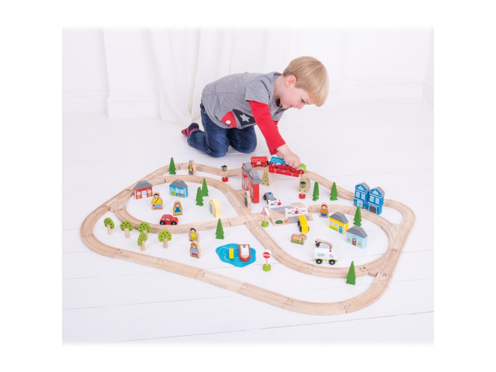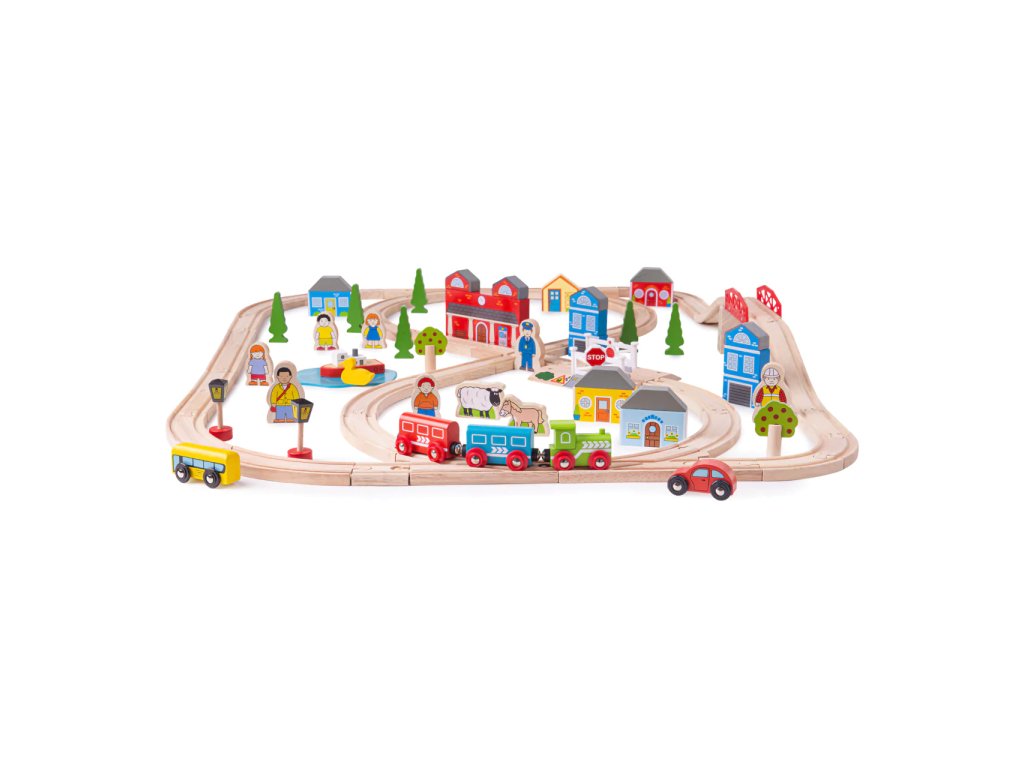 Bigjigs Rail Dřevěná vláčkodráha město a vesnice 91 dílů