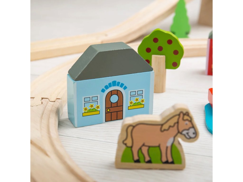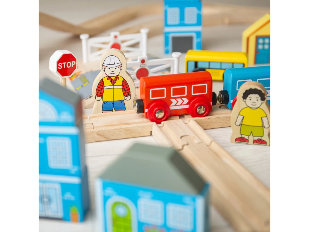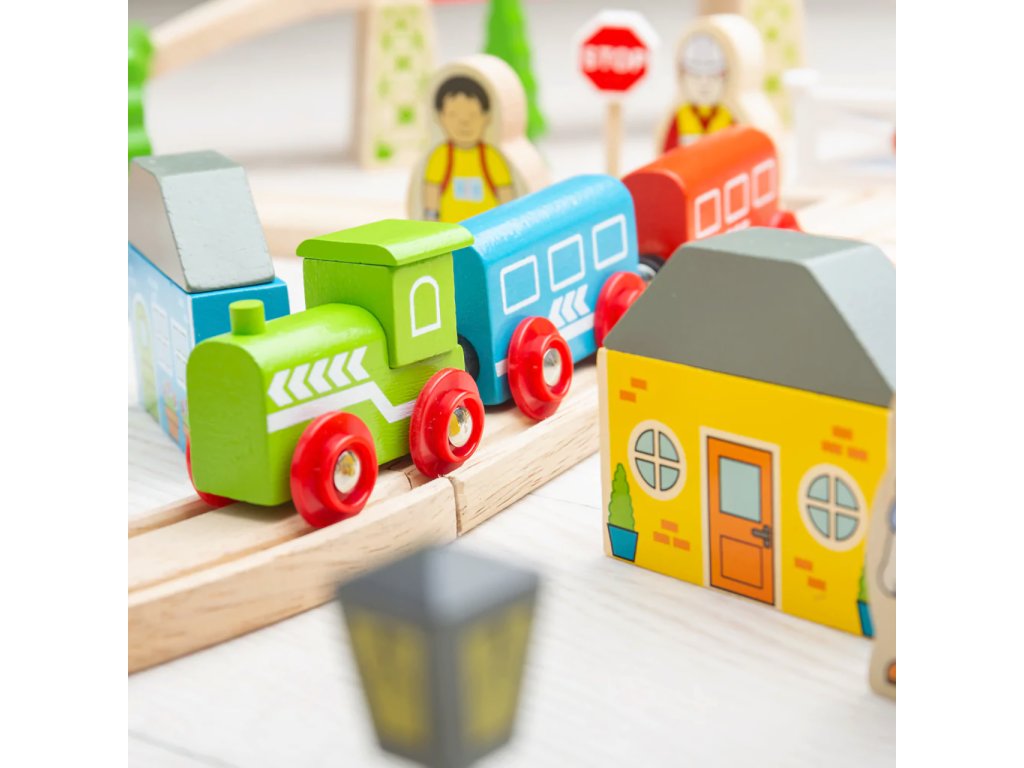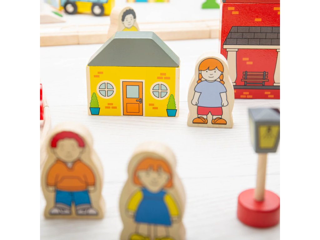 Bigjigs Rail Dřevěná vláčkodráha město a vesnice 91 dílů