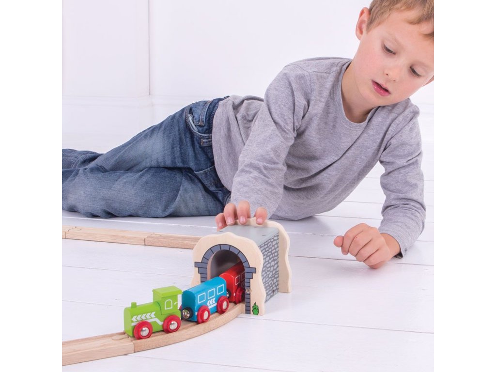Dřevěný železniční tunel v podobě kamenné stavby s vysoce kvalitním povrchem je základním kamenem a skvělým rozšířením každé vláčkodráhy.Hlavní vlastnosti: vláčkodráhy a jejich příslušenství značky Bigjigs Rail je možno kombinovat se všemi dalšími dřevěnými vláčkodráhami na trhuvyrobeno z kvalitních a zodpovědně získaných přírodních materiálůodpovídá současným evropským bezpečnostním normámpodporuje představivost, obratnost a koordinaci