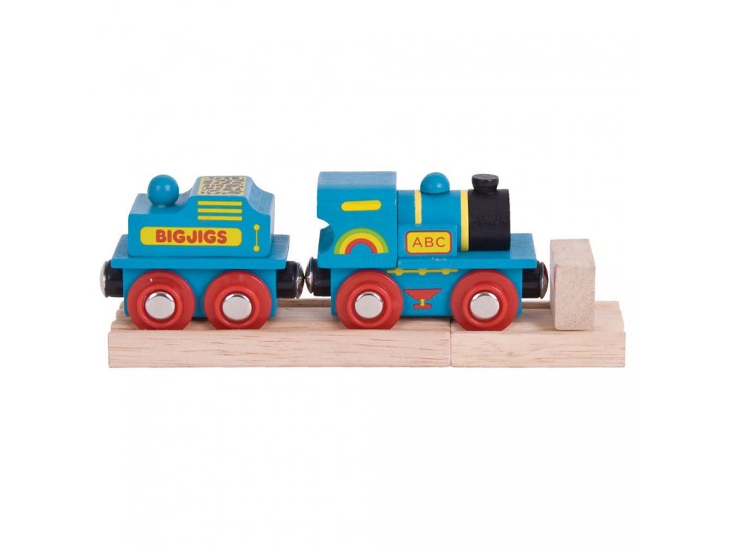 Bigjigs Rail Modrá mašinka s tendrem + 2 koleje