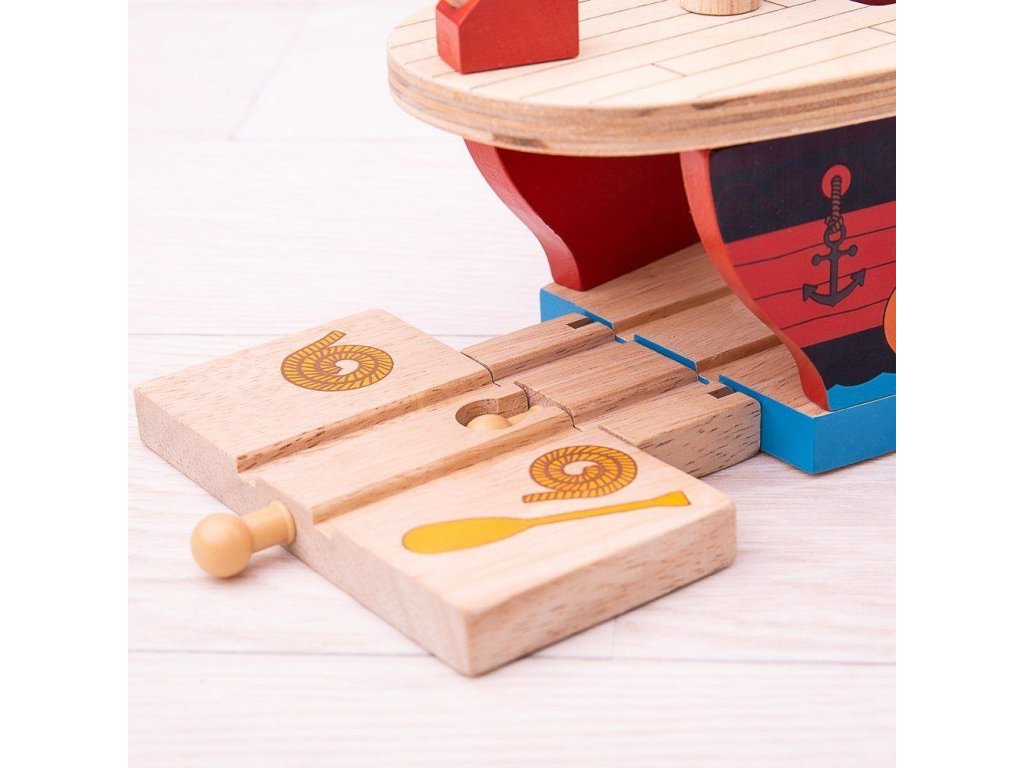 Ahoj! Tato dřevěná pirátská galéra krásně doplní vaši vláčkodráhu. Děti mohou sledovat vláček v podpalubí skrz kruhová okénka. Až budete připraveni odplout, jednoduše zavřete pružné kolejové díly na obou koncích lodě. Moře je plné chobotnic, vyhněte se jim a užijte si mnoho pirátské zábavy. Tato dřevěná loď rozvíjí dětskou představivost, zručnost a koordinaci. Pevná a odolná pirátská loď děti pobídne k představivé hře. Vyrobeno z kvalitních materiálů ze zodpovědných zdrojů. Splňuje evropské bezpečnostní standardy. Hlavní vlastnosti: dřevěná pirátská loď se hodí k vláčkodráhámvláčkodráhy a jejich příslušenství značky Bigjigs Rail je možno kombinovat se všemi dalšími dřevěnými vláčkodráhami na trhuvyrobeno z kvalitních a zodpovědně získaných přírodních materiálůpodporuje představivost, zručnost a koordinaci