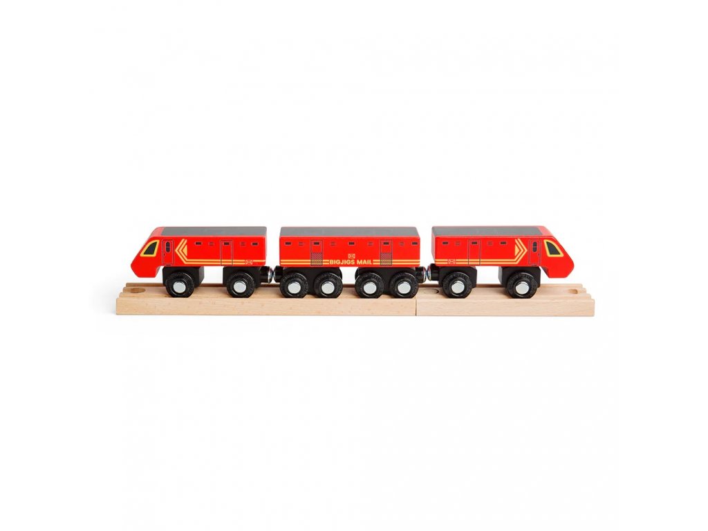 Tento dřevěný vláček přináší dětem hodiny kreativního a dobrodružného hraní. Dodává se se třemi červenými vagóny se žlutými pruhy a magnetickými spojkami, které spojují vagóny dohromady. Obsahuje také dva kusy dřevěných kolejí. Tématické vláčky jsou vynikající pro nápaditou hru. Tento druh hry pomáhá dětem posílit jejich komunikační dovednosti, slovní zásobu, kreativitu, sociální a emocionální rozvoj. Vyrobeno z vysoce kvalitních, zodpovědně získaných materiálů. Splňuje aktuální evropské bezpečnostní normy. Vláčkodráhy a jejich příslušenství značky Bigjigs Rail je možno kombinovat se všemi dalšími dřevěnými vláčkodráhami na trhu. Hlavní vlastnosti: vhodné pro děti které mají rády vlaky a dobrodružstvípodporuje prostorové myšlení a koordinaci ruky a okarozvíjí motorické dovednostipodněcuje dětskou fantazii