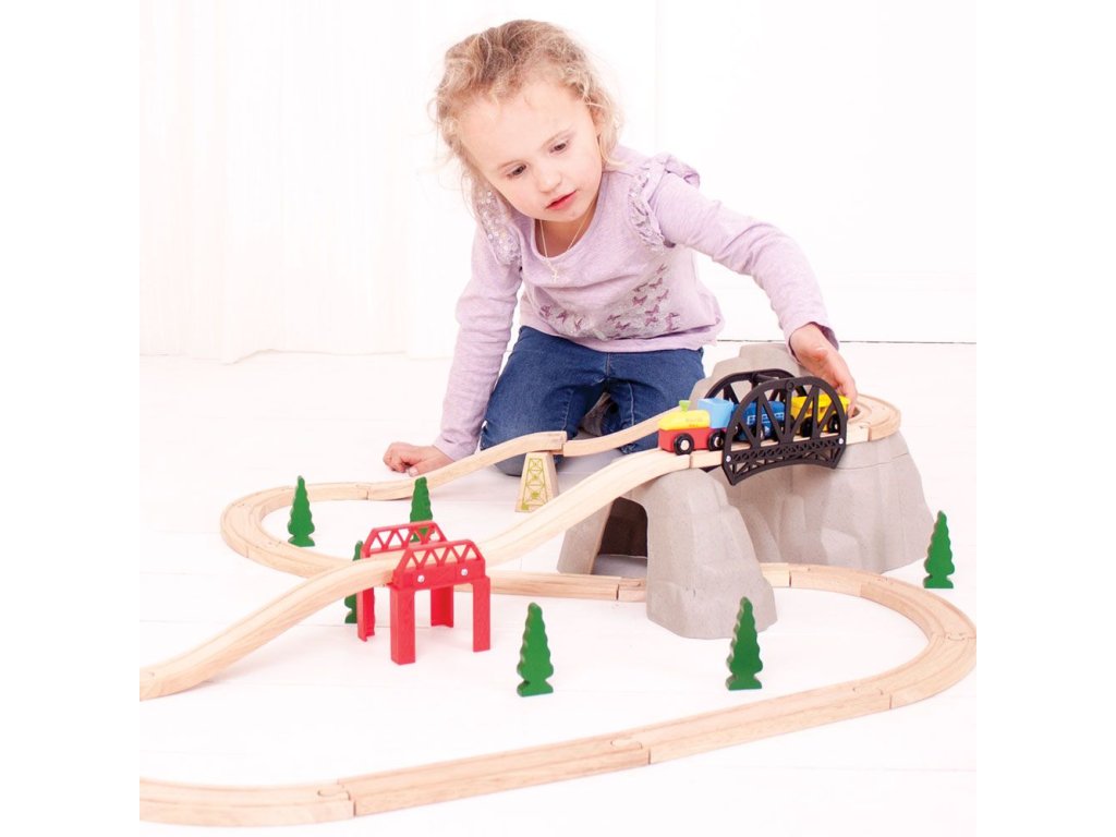 Žádná hora není pro mladé energické dobrodruhy příliš velkou výzvou! Obsahuje dřevěnou vláčkodráhu a podpěry. Skládá se z 12 dílů. Většina ostatních velkých značek dřevěných železnic je s Bigjigs Rail kompatibilní. Vyrobeno z vysoce kvalitních materiálů, které pocházejí ze zodpovědných zdrojů. Vyhovuje současným evropským bezpečnostním normám. Součástí balení není vláček s vagónky. Hlavní vlastnosti: vláčkodráhy a jejich příslušenství značky Bigjigs Rail je možno kombinovat se všemi dalšími dřevěnými vláčkodráhami na trhuvyrobeno z kvalitních a zodpovědně získaných přírodních materiálůodpovídá současným evropským bezpečnostním normámpodporuje představivost, obratnost a koordinaci