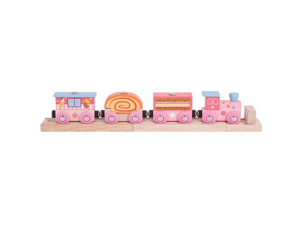 Součástí balení jsou také koleje: 2ks střední kolej BJT101 a 1ks koncová kolej BJT161!Holčičky a nejen ty budou milovat tento veselý dřevěný vláček, který byl pro ně speciálně navržen v růžových barvách. Ideální vlaková souprava obsahující lokomotivu a tři detailně provedené vagónky spojené klasickým magnetickým systémem! Vláček lze kombinovat s jakýmkoliv jiným dřevěným železničním systémem. Hlavní vlastnosti: Vláčkodráhy a jejich příslušenství značky Bigjigs Rail je možno kombinovat se všemi dalšími dřevěnými vláčkodráhami na trhu.Vyrobeno z kvalitních a zodpovědně získaných přírodních materiálů.Odpovídá současným evropským bezpečnostním normám.Podporuje představivost, obratnost a koordinaci.