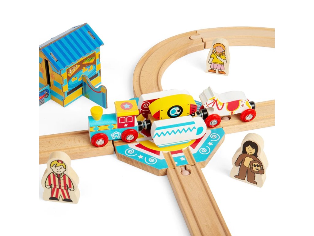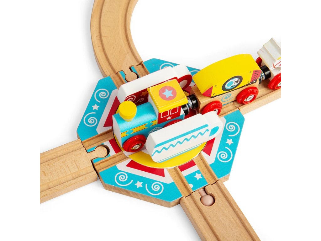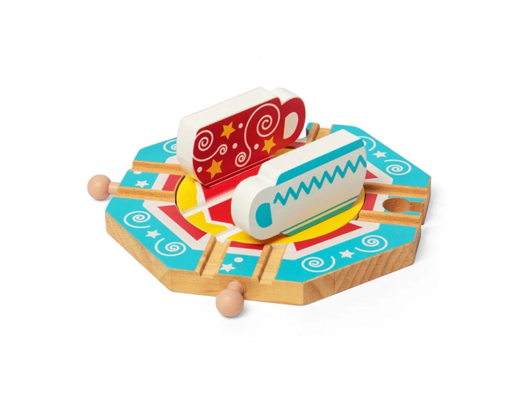 S touto vintage točnou s motivem čajových šálků si děti užijí mnoho zábavy. Na otočné základně najdete dva barevné čajové šálky, které slouží jako železniční závory. Přehoďte výhybky a vlak může pokračovat na své cestě. Točna se bude hodit do každé vláčkodráhy, děti si při hře potrénují kreativitu, představivost a jemnou motoriku.Vláčkodráhy a jejich příslušenství značky Bigjigs Rail je možno kombinovat se všemi dalšími dřevěnými vláčkodráhami na trhu. Vyrobeno z vysoce kvalitních materiálů z odpovědných zdrojů. Odpovídá evropským bezpečnostním standardům. Hlavní vlastnosti: točna s motivem čajových šálkůotočná základnavyrobeno z FSC® certifikovaného dřevakompatibilní s vláčkodráhami Bigjigs Toys4,7x14,2x14,2 cmvhodné od 3 let Značka a certifikát FSC® (Forest Stewardship Council) zaručuje, že dřevo, ze kterého byl produkt vyroben, nebylo vytěženo nelegálně a pochází z lesů obhospodařovaných šetrným či přírodě blízkým způsobem, ve kterém jsou dodržovány přísné environmentální a sociální požadavky. Značka FSC® na výrobku znamená, že svým nákupem pomáháte chránit lesy a podporujete šetrné, odpovědné či přírodě blízké hospodaření, díky kterému jsou naše lesy stabilnější, zdravější, mají přirozenou druhovou skladbu a lépe odolávají negativním následkům klimatických změn.