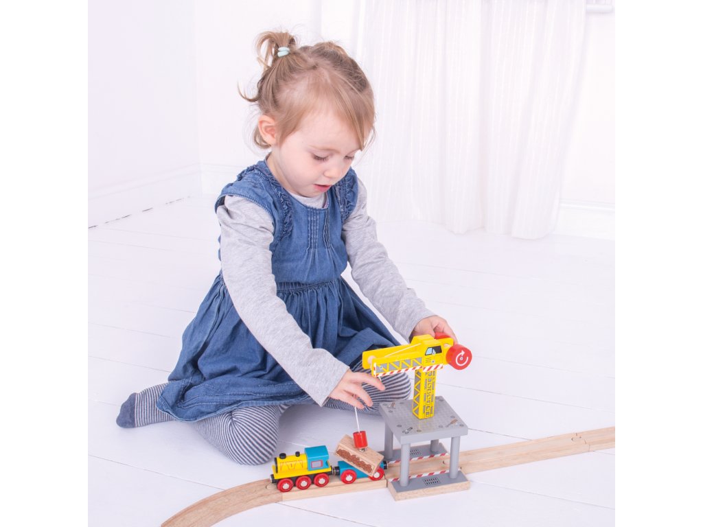 Železniční jeřáb je nezbytným pomocníkem při překládce nebo nakládce zboží na každém nákladovém nádraží. Magnet umístěný na konci lana umožňuje nákladku či překládku celých vagónů. Hlavní vlastnosti: vláčkodráhy a jejich příslušenství značky Bigjigs Rail je možno kombinovat se všemi dalšími dřevěnými vláčkodráhami na trhuvyrobeno z kvalitních materiálů ze zodpovědných zdrojůodpovídá současným evropským bezpečnostním normámrozvíjí představivost, obratnost a koordinaci