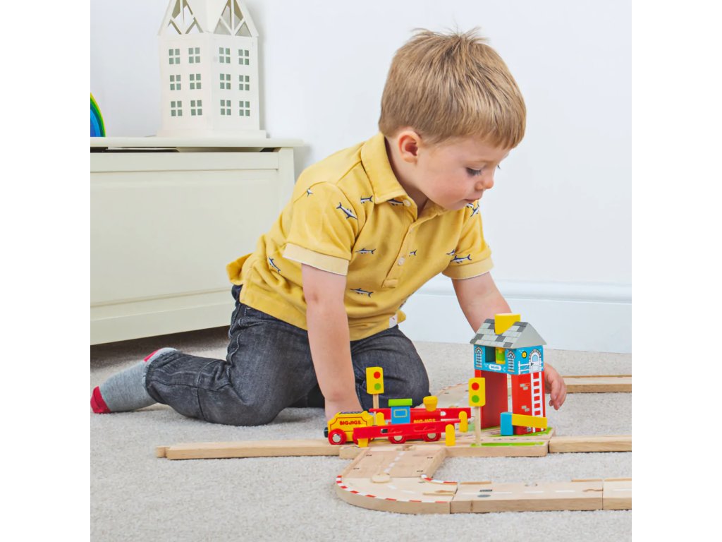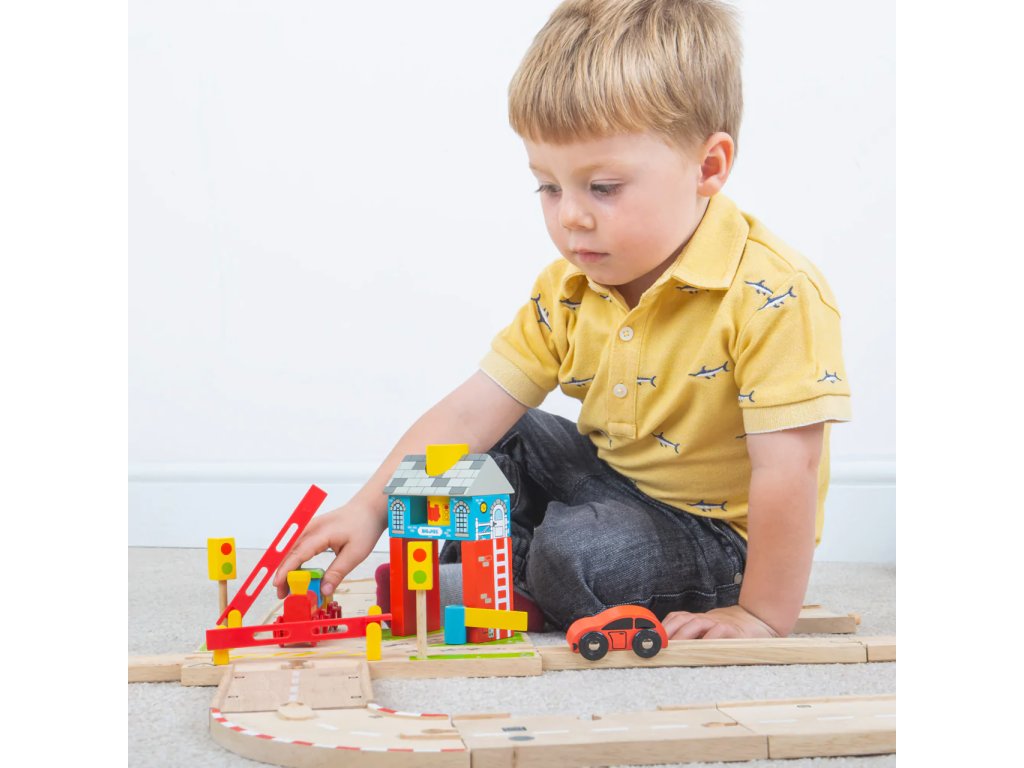 Tento chytrý přejezd je ideálním doplňkem Vaší vláčkodráhy. Je vhodný jak pro vláčky, tak automobily a další vozidla. Děti si ho zamilují, protože pomáhá vláčkům a automobilům jezdit společně bezpečně. Hlavní vlastnosti: vláčkodráhy a jejich příslušenství je možno kombinovat se všemi dalšími dřevěnými vláčkodráhami na trhuvětšina ostatních hlavních značek dřevěných železnic je kompatibilní s Bigjigs Railvyrobeno z vysoce kvalitních a zodpovědně pocházejících materiálůodpovídá současným evropským bezpečnostním normám