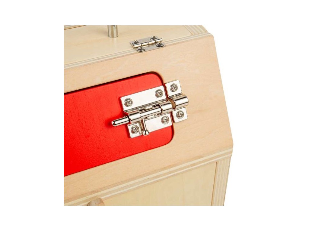 Různé zámky a labyrinty. Tento kufříkový domeček přináší spoustu zábavy, díky které bude moci Vaše dítě rozvíjet svou zručnost, zvídavost a zejména jemnou motoriku. Učí děti logickému myšlení a vytrvání ve výzvách. Funguje také jako praktický uložný box. Splňuje všechny aktuální evropské bezpečnostní normy. Barveno netoxickými barvami a laky. Hlavní vlastnosti: podporuje nezávislost, jemnou motoriku a koordinaci ruka-okopodněcuje kreativní myšlení a vývoj představivostisenzorická stimulacevyrobena ze dřeva s certifikací FSC Značka a certifikát FSC® (Forest Stewardship Council) zaručuje, že dřevo, ze kterého byl produkt vyroben, nebylo vytěženo nelegálně a pochází z lesů obhospodařovaných šetrným či přírodě blízkým způsobem, ve kterém jsou dodržovány přísné environmentální a sociální požadavky. Značka FSC® na výrobku znamená, že svým nákupem pomáháte chránit lesy a podporujete šetrné, odpovědné či přírodě blízké hospodaření, díky kterému jsou naše lesy stabilnější, zdravější, mají přirozenou druhovou skladbu a lépe odolávají negativním následkům klimatických změn.