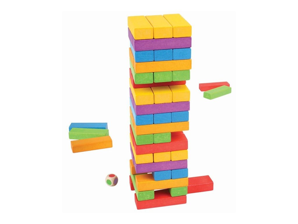 Pestrobarevné dílky dělají tuto hru speciální. Ke hře budete potřebovat soustředěnost a zručnost. Hraje se takto – hodíte kostkou a podle toho jaká barva padne musíte vytáhnout stejně barevný dílek z věže, ale bez toho, aby celá spadla! Pokud vás hra omrzí, můžete si z dílků stavět dle fantazie. Tak kdo prokáže nejjistější ruku a vyhraje? Hra pro mladé i staré, trénuje trpělivost a jemnou motoriku. Hlavní vlastnosti: pestrobarevné dílky pro všechny věkové kategorie trénuje trpělivost a jemnou motoriku