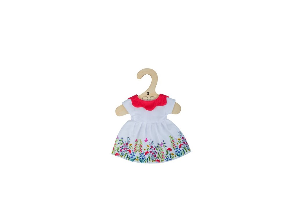 Bigjigs Toys Bílé květinové šaty s červeným límečkem pro panenku 25 cm