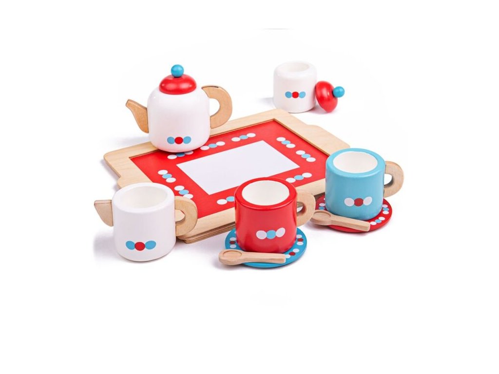 Čaj pro dva? Naši nejmenší si mohou vyzkoušet své hostitelské dovednosti s touto dřevěnou čajovou sadou a podnosem Bigjigs Toys. Tato dřevěná herní sada má vše, co potřebují k uspořádání dokonalého čajového večírku. Obsahuje čajovou konvici s poklicí, 2 dřevěné šálky a podšálky, cukřenku s poklicí, 2 vařečky, konvičku na mléko a tác. Tento rozkošný čajový servis podporuje kreativní a nápadité hraní rolí, rozvíjí sociální dovednosti a zlepšuje obratnost. Vyrobeno z vysoce kvalitních, zodpovědně získaných materiálů. Splňuje aktuální evropské bezpečnostní normy. Hlavní vlastnosti: obsahuje čajovou konvici, šálky, podšálky, cukřenku, vařečky, konvičku na mléku a tácpodporuje kreativitu a nápaditostrozvíjí sociální dovednostizlepšuje obratnost a motoriku