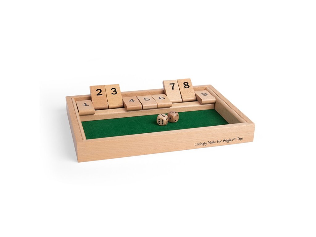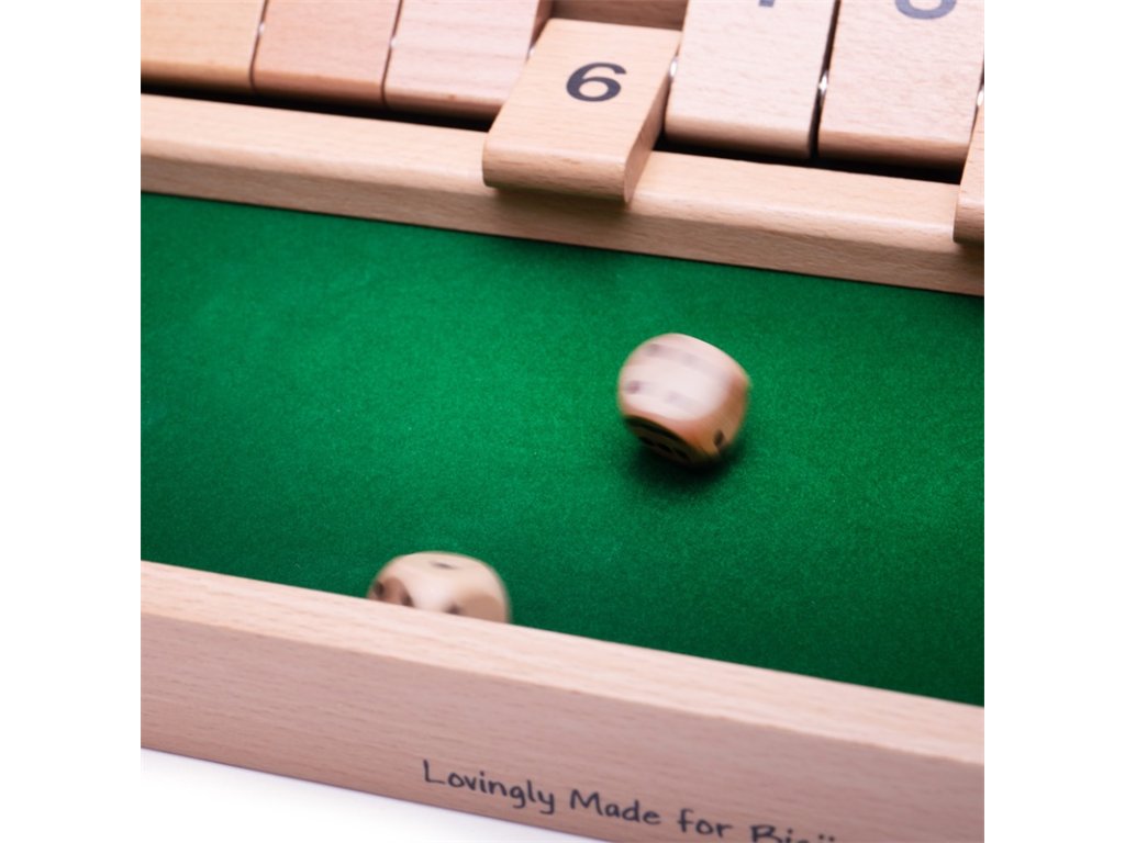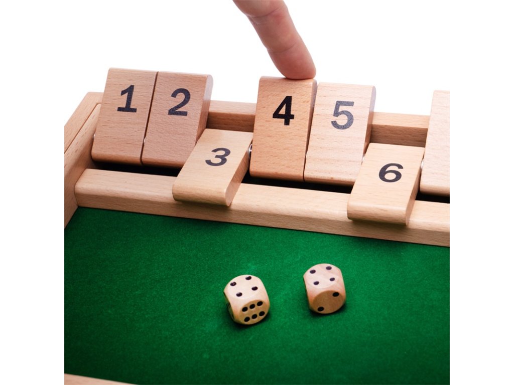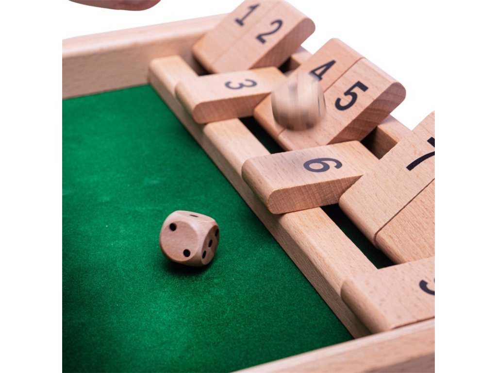 Zábavná hra, která dětem zlepší jejich numerické dovednosti. Hoďte dvojicí kostek a zavřete destičky, (maximálně dvě) které se rovnají celkovému počtu hodů kostkou. Pokračujte ve hře dokud nebude možné zavřít žádné další destičky. Zbylý součet neotočených destiček si zapište. Hraje se do určeného počtu trestných bodů, zpravidla do 200, vyhrává pak hráč s nejmenším počtem trestných bodů. Vzdělávací a zábavná hra, může ji hrát jeden nebo více hráčů. Tato dřevěná verze hry v tradičně vyrobeném dřevěném rámu s plstěnou hrací deskou. Vyrobeno z vysoce kvalitních, zodpovědně získaných materiálů. Splňuje aktuální evropské bezpečnostní normy. Skládá se ze 3 hracích prvků. Hlavní vlastnosti: hra pro jednoho nebo více hráčůobsahuje 2 kostky a hrací deskupodporuje matematické dovednosti