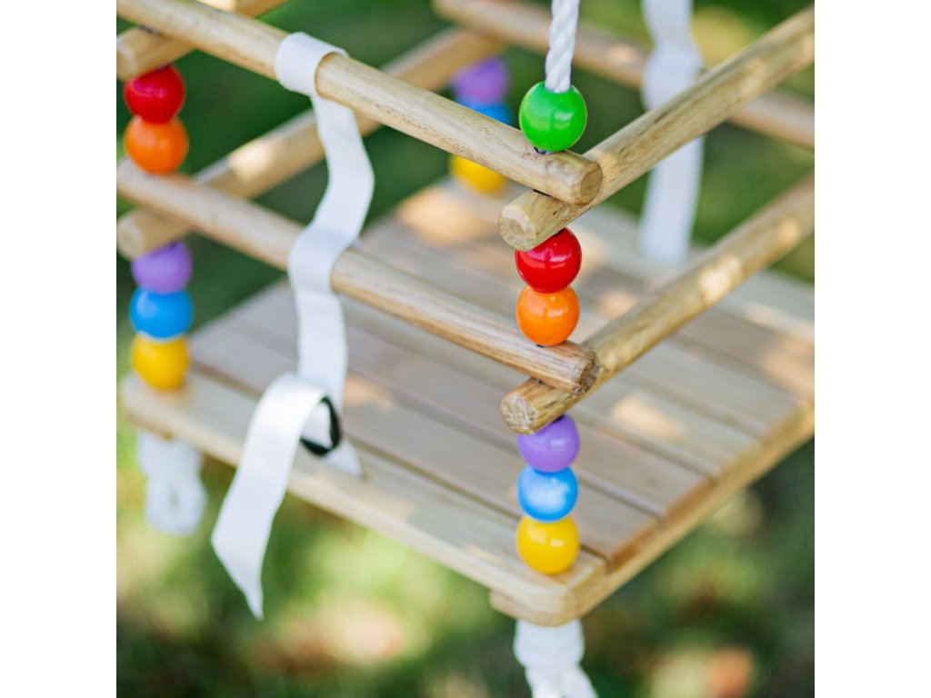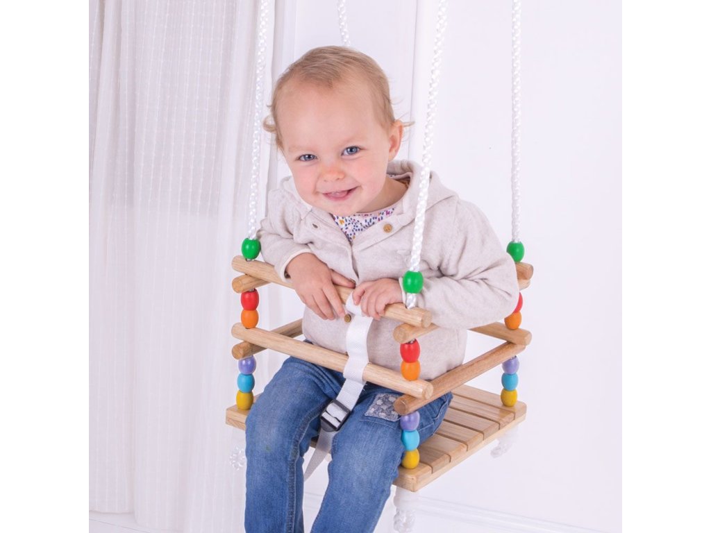 Ideální první dřevěná houpačka s pestrobarevnými stranami a extra upevňovacími popruhy. Ideální na zahradu. Houpačka je lakovaná. K připevnění jsou nutné karabiny (nejsou součástí dodávky). K zajištění této houpačky k silné větvi stromu jsou nutné kovové háčky a karabiny (nejsou součástí dodávky). Vyrobeno z vysoce kvalitních, odpovědně získaných materiálů. Odpovídá současným evropským bezpečnostním normám. Při používání tohoto produktu se doporučuje, aby děti všech věkových skupin byly pod dohledem odpovědné dospělé osoby. Chraňte před venkovními vlivy. Hlavní vlastnosti: lano nastavitelné do maxima: 1,12mhmotnostní limit: 25 kg