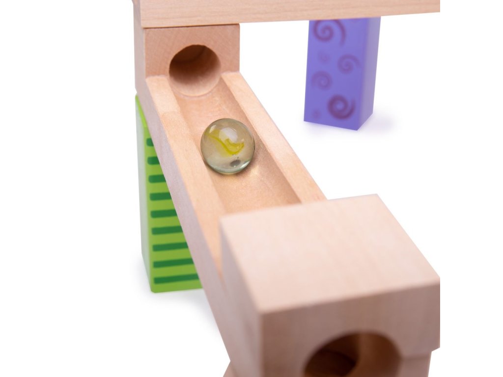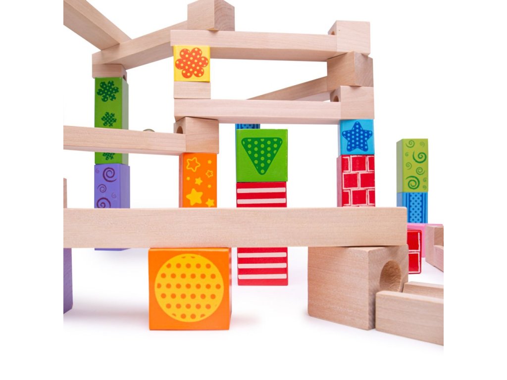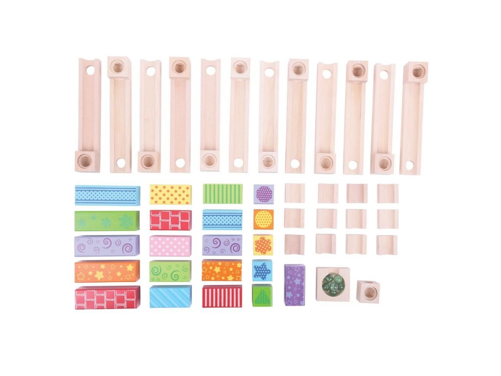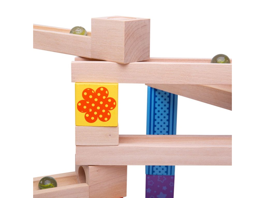 Postavte si barevnou dřevěnou kuličkovu dráhu a s radostí sledujte, jak kuličky sjíždějí shora dolů! Dřevěné kostky vytvoří mnoho různých designů. Skládá se z 53 dílů. Hlavní vlastnosti: ideální pro kreativní hranívyrobeno z vysoce kvalitních a zodpovědně zpracovaných materiálůvyhovuje současným evropským bezpečnostním normámobsahuje 53 dílů