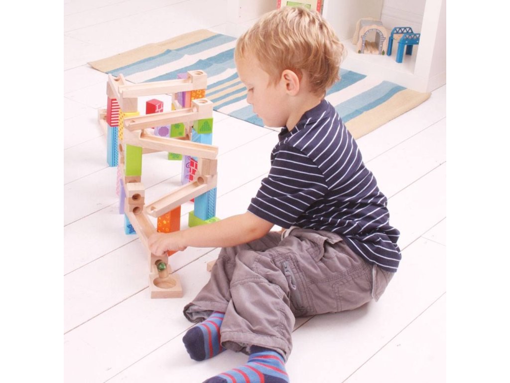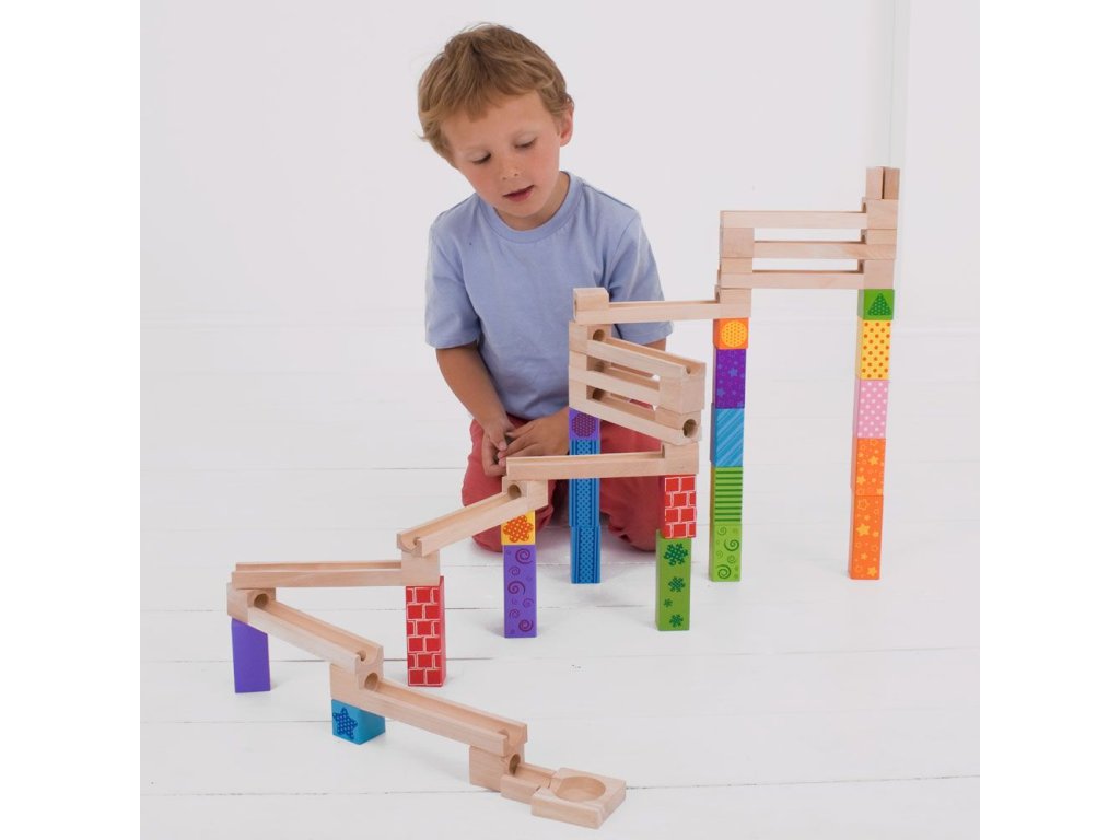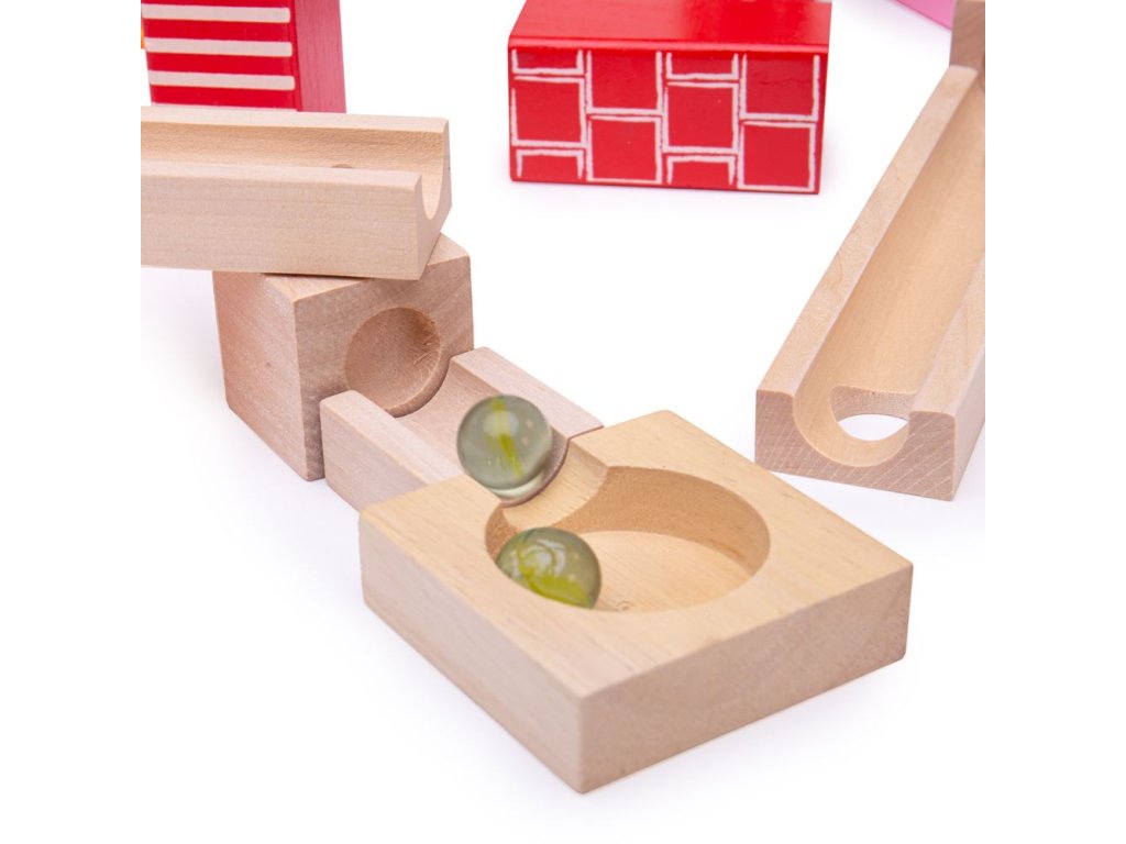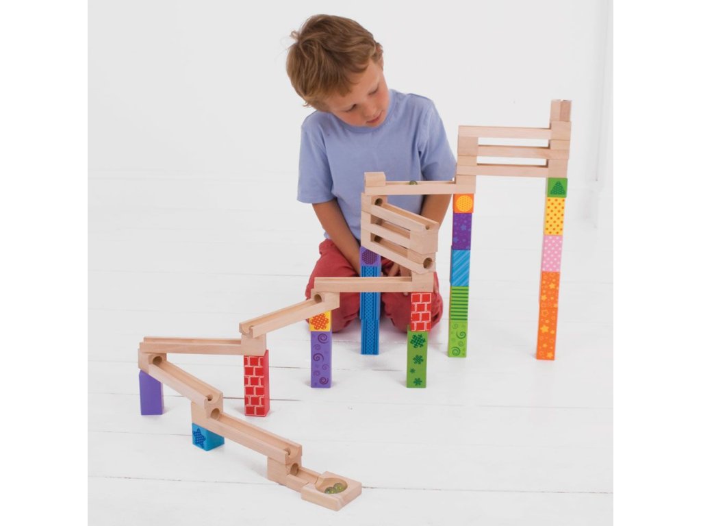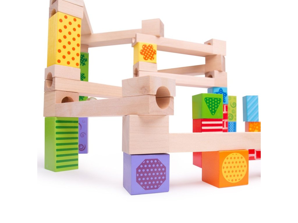 Postavte si barevnou dřevěnou kuličkovu dráhu a s radostí sledujte, jak kuličky sjíždějí shora dolů! Dřevěné kostky vytvoří mnoho různých designů. Skládá se z 53 dílů. Hlavní vlastnosti: ideální pro kreativní hranívyrobeno z vysoce kvalitních a zodpovědně zpracovaných materiálůvyhovuje současným evropským bezpečnostním normámobsahuje 53 dílů