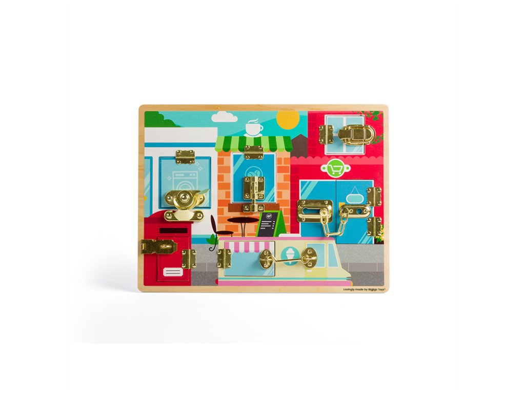 Bigjigs Toys Dřevěná motorická deska západky a zámky
