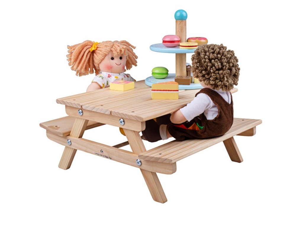 Bigjigs Toys Dřevěná pikniková lavička pro panenky